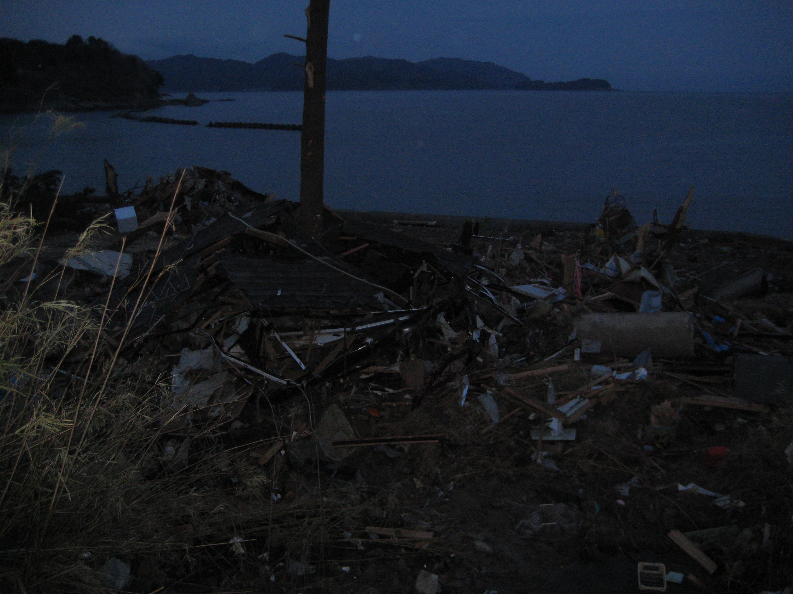 海岸のガレキ 拡大表示 ダウンロード 識別子 : 12739 タイトルよみ : カイガンノガレキ 說明・要約 : 被災地の夜の様子 街灯はなく真っ暗だ 作成者(撮影者) : 社会福祉法人 堤福祉会 作成者(撮影者)よみ : シャカイフクシホウジン ツツミフクシカイ 提供者 : 社会福祉法人 堤福祉会 提供者よみ : シャカイフクシホウジン ツツミフクシカイ 撮影(作成)場所 : 岩手県上閉伊郡大槌町 岩手県内(詳細不明) 撮影(作成)場所よみ : イワテケンカミヘイグンオオツチチョウ 作成日・撮影日 : 2011年 3月 22日 カテゴリー : 物的被害 地域 : その他 備考 : 一般公開