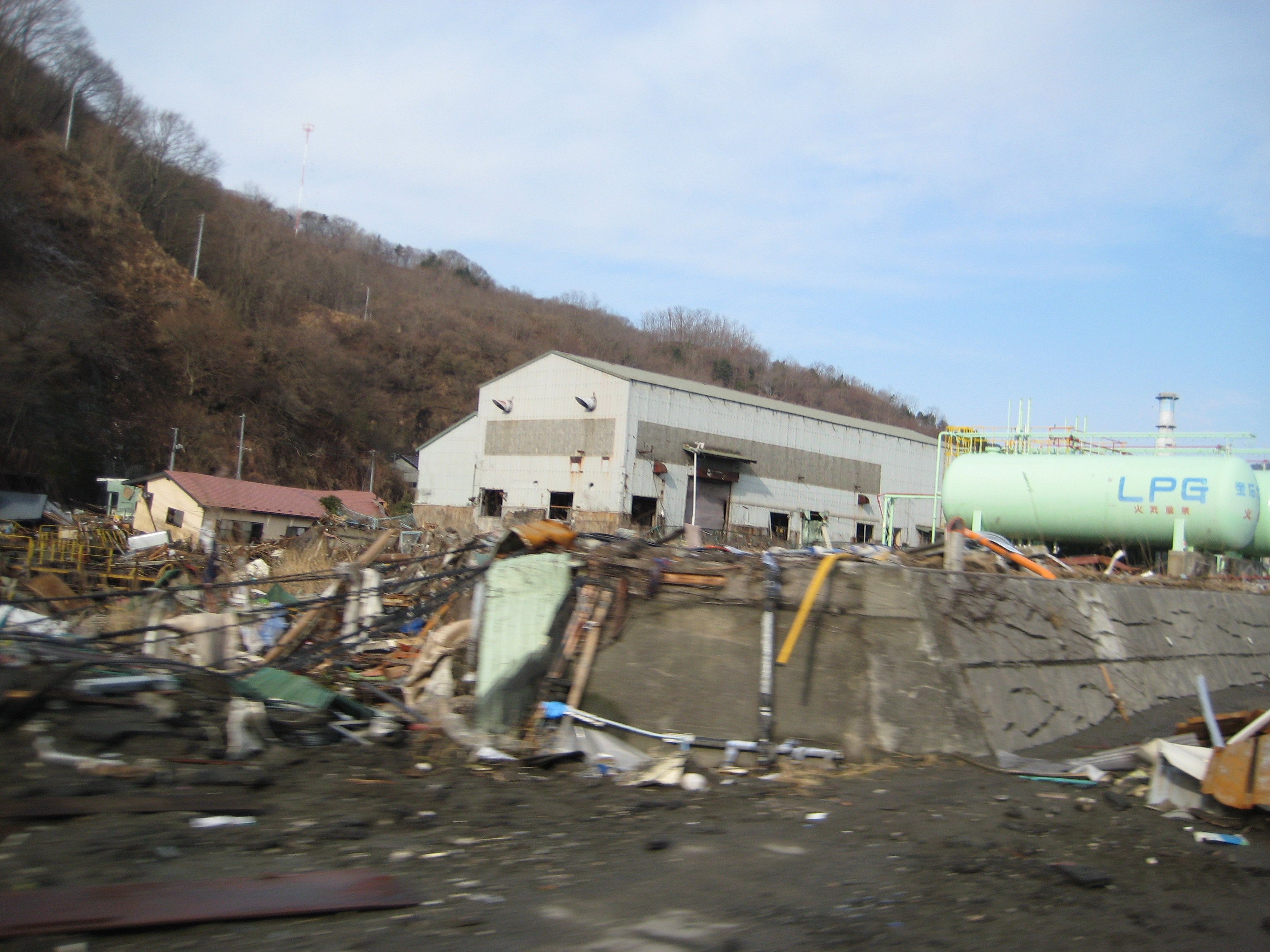 釜石市松原町釜石ガス付近被災状況 拡大表示 ダウンロード 識別子 : 12746 タイトルよみ : カマイシシマツバラチョウカマイシガスフキンヒサイジョウキョウ 說明・要約 : ガスタンクや建物の周りにガレキが散乱している 作成者(撮影者) : 社会福祉法人 堤福祉会 作成者(撮影者)よみ : シャカイフクシホウジン ツツミフクシカイ 提供者 : 社会福祉法人 堤福祉会 提供者よみ : シャカイフクシホウジン ツツミフクシカイ 撮影(作成)場所 : 岩手県釜石市 撮影(作成)場所よみ : イワテケンカマイシシ 作成日・撮影日 : 2011年 3月 25日 カテゴリー : 物的被害 地域 : その他 備考 : 一般公開