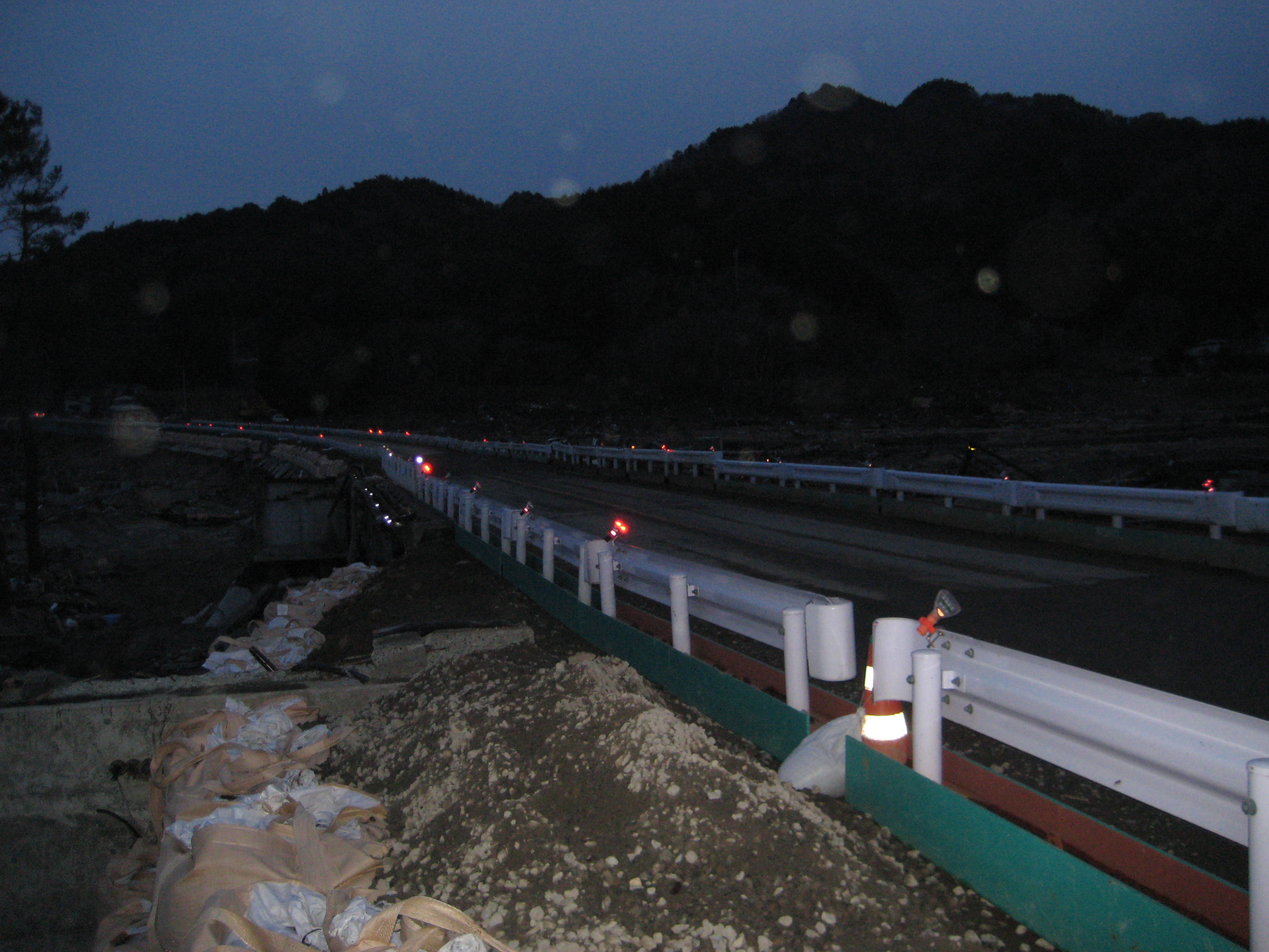 浪板観光ホテル付近、国道45号の復旧作業。一部舗装がとれている。