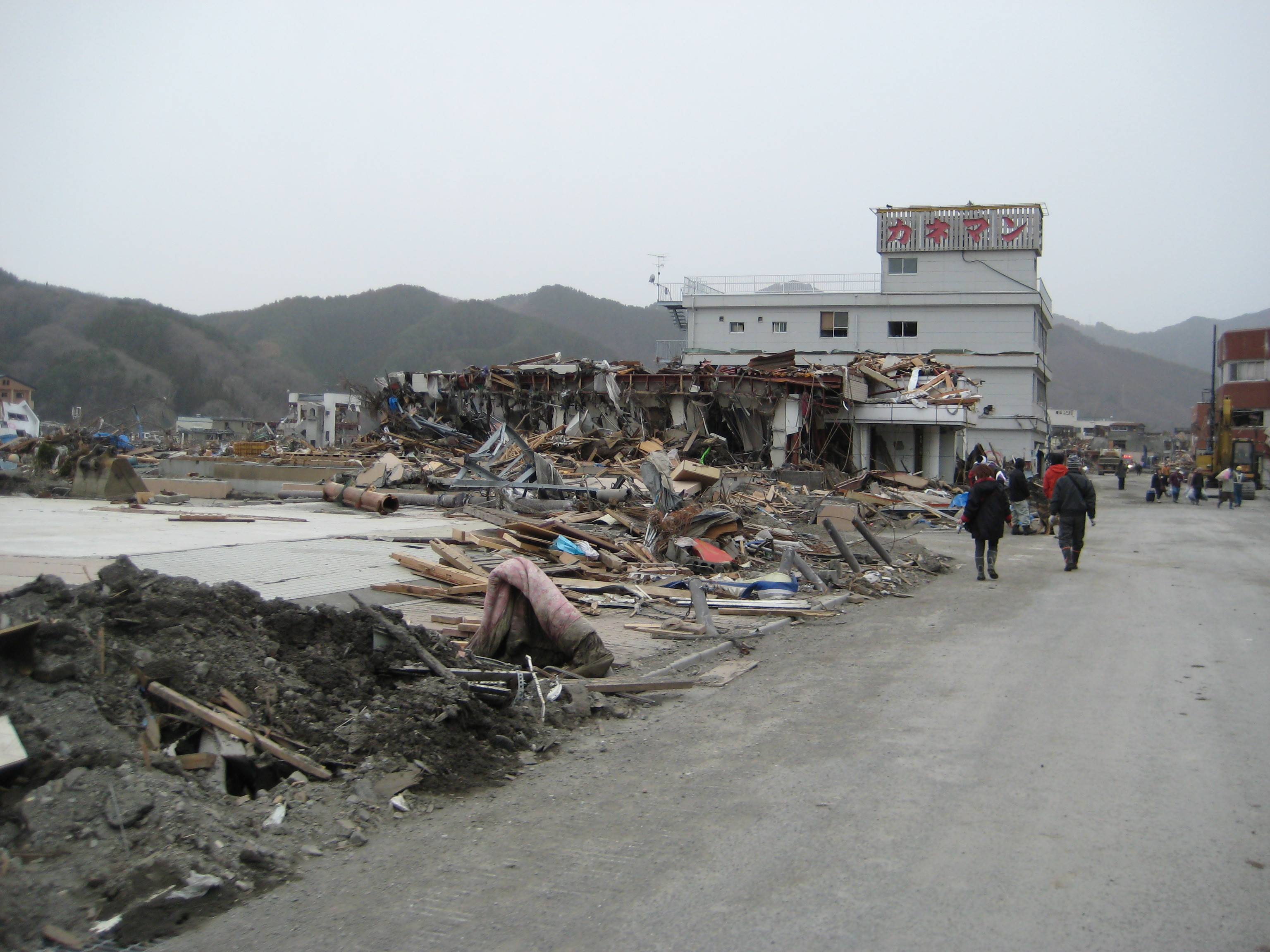 大町周辺の被災状況 拡大表示 ダウンロード 識別子 : 12760 タイトルよみ : オオマチシュウヘンノヒサイジョウキョウ 說明・要約 : 大町カネマンの周辺の様子。人が荷物を運んで歩いている。 作成者(撮影者) : 社会福祉法人 堤福祉会 作成者(撮影者)よみ : シャカイフクシホウジン ツツミフクシカイ 提供者 : 社会福祉法人 堤福祉会 提供者よみ : シャカイフクシホウジン ツツミフクシカイ 撮影(作成)場所 : 岩手県上閉伊郡大槌町 大町 撮影(作成)場所よみ : イワテケンカミヘイグンオオツチチョウ オオマチ 作成日・撮影日 : 2011年 3月 20日 カテゴリー : 物的被害 地域 : 町方地区 備考 : 一般公開