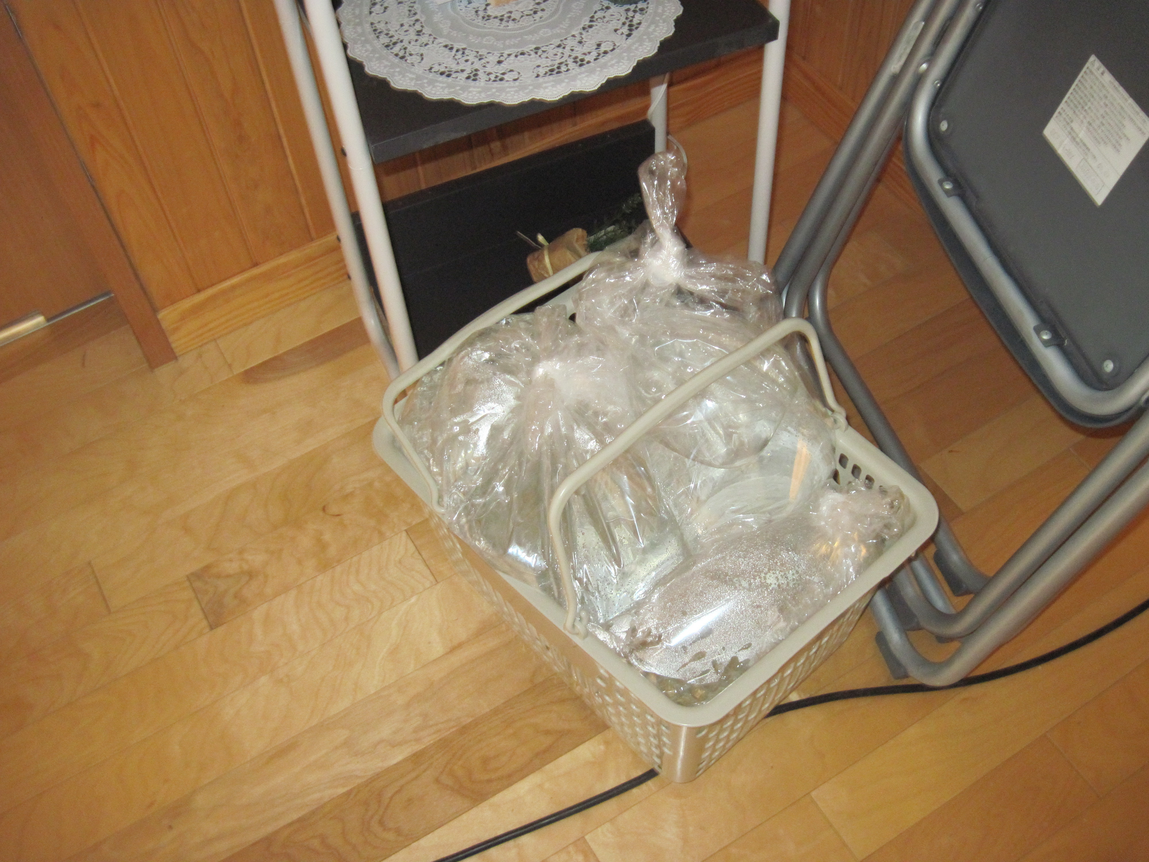 容器が無いため、袋にいれ貯蓄されている飲料水。