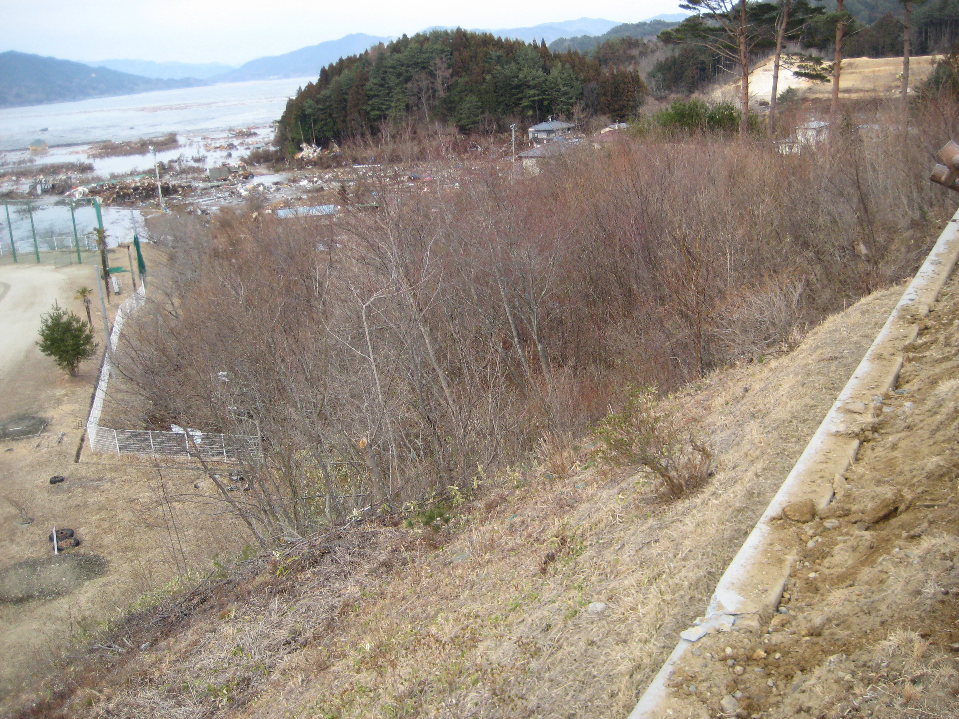 らふたぁヒルズから見た、吉里吉里海岸および町内の津波襲来状況