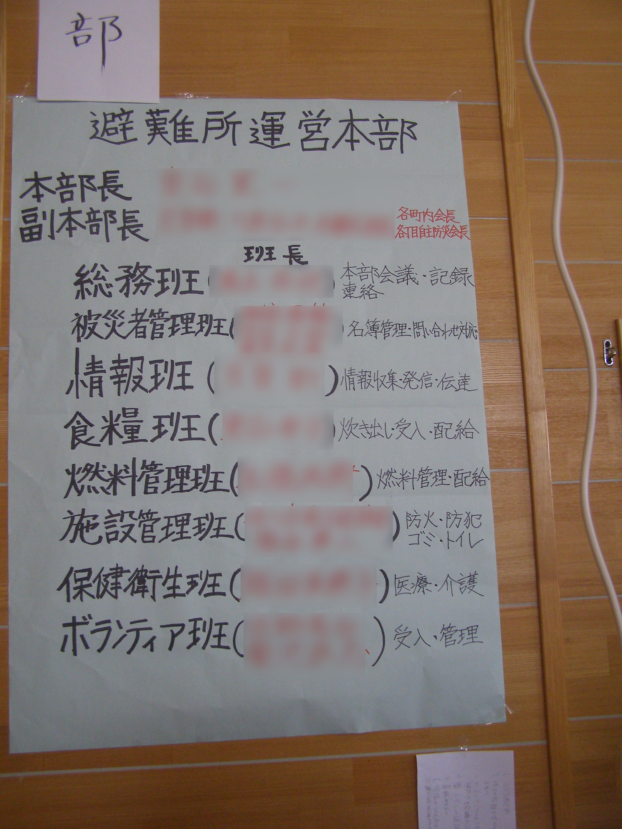 避難生活と避難情報 拡大表示 ダウンロード 識別子 : 7413 タイトルよみ : ヒナンセイカツトヒナンジョウホウ 說明・要約 : 吉里吉里小学校と、施設での避難生活。避難情報。 作成者(撮影者) : 社会福祉法人 堤福祉会 作成者(撮影者)よみ : シャカイフクシホウジン ツツミフクシカイ 提供者 : 社会福祉法人 堤福祉会 提供者よみ : シャカイフクシホウジン ツツミフクシカイ 撮影(作成)場所 : 岩手県上閉伊郡大槌町 撮影(作成)場所よみ : イワテケンカミヘイグンオオツチチョウ 作成日・撮影日 : 2011年 3月 18日 カテゴリー : 避難所 地域 : 吉里吉里地区 備考 : 一般公開