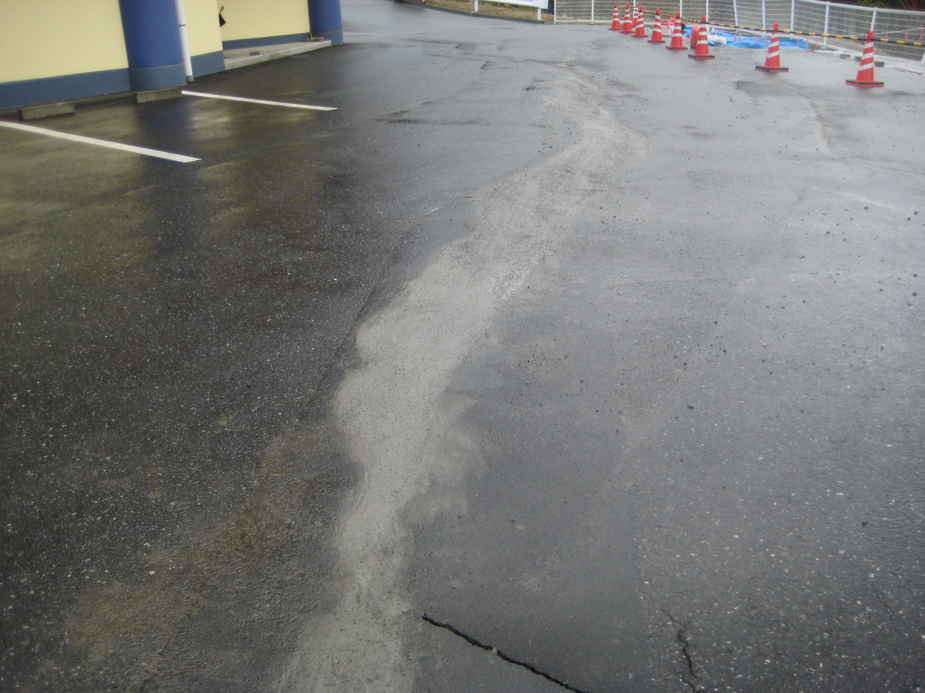 老人ホーム地割れ状況と修復作業(らふたぁヒルズ)