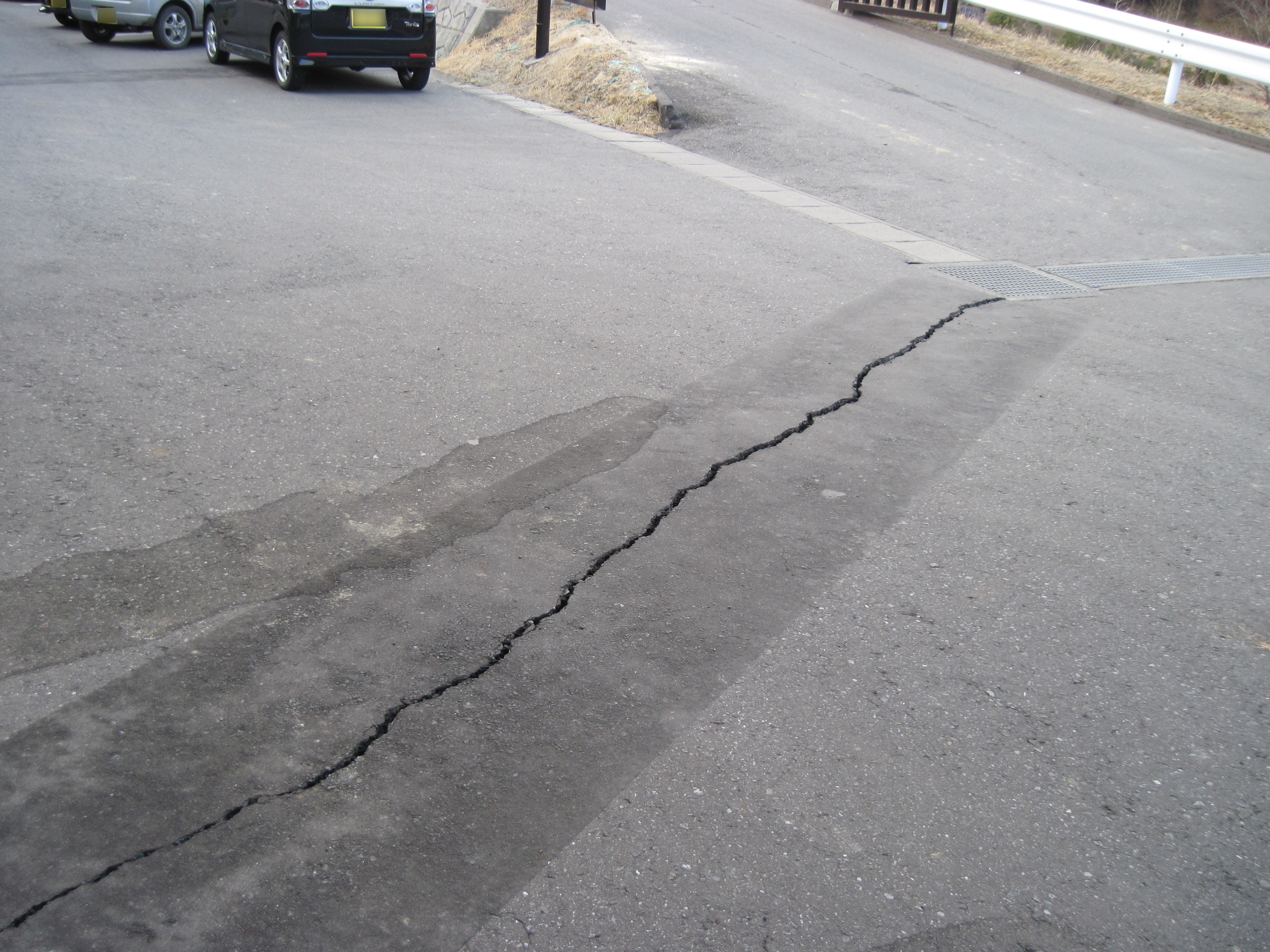 老人ホーム地割れ状況と修復作業(らふたぁヒルズ)