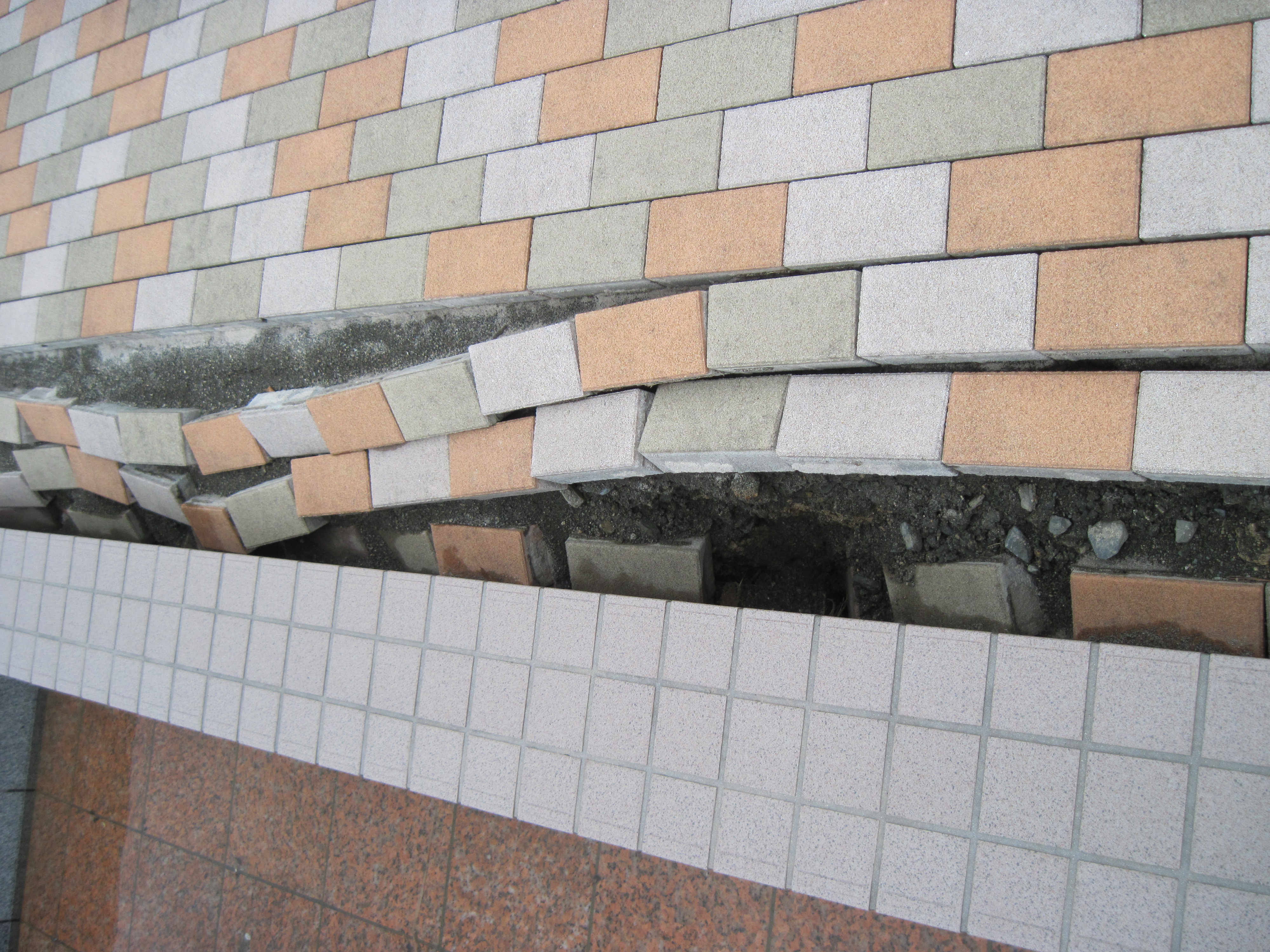 老人ホーム地割れ状況と修復作業(らふたぁヒルズ)