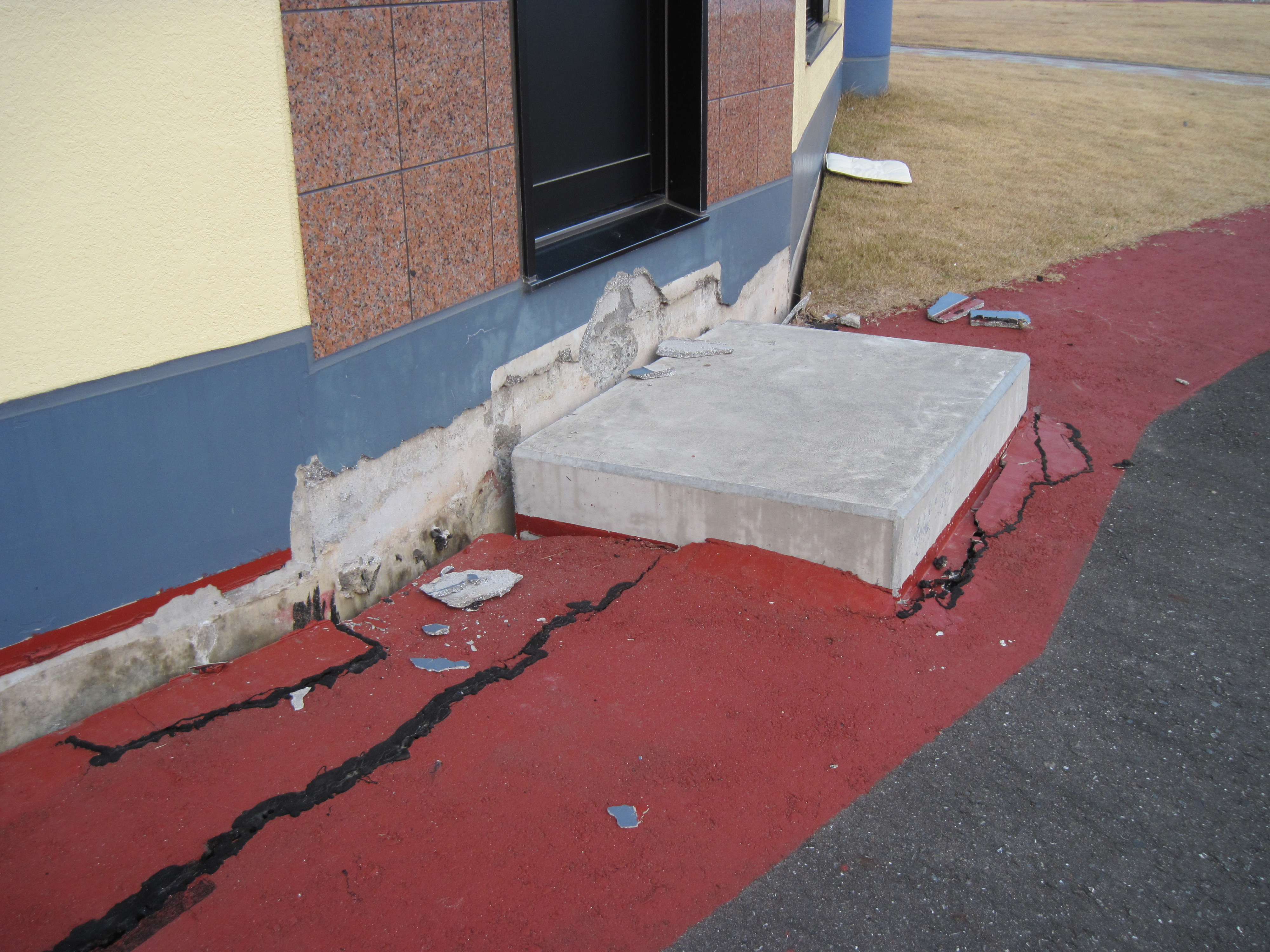 老人ホーム地割れ状況と修復作業(らふたぁヒルズ)