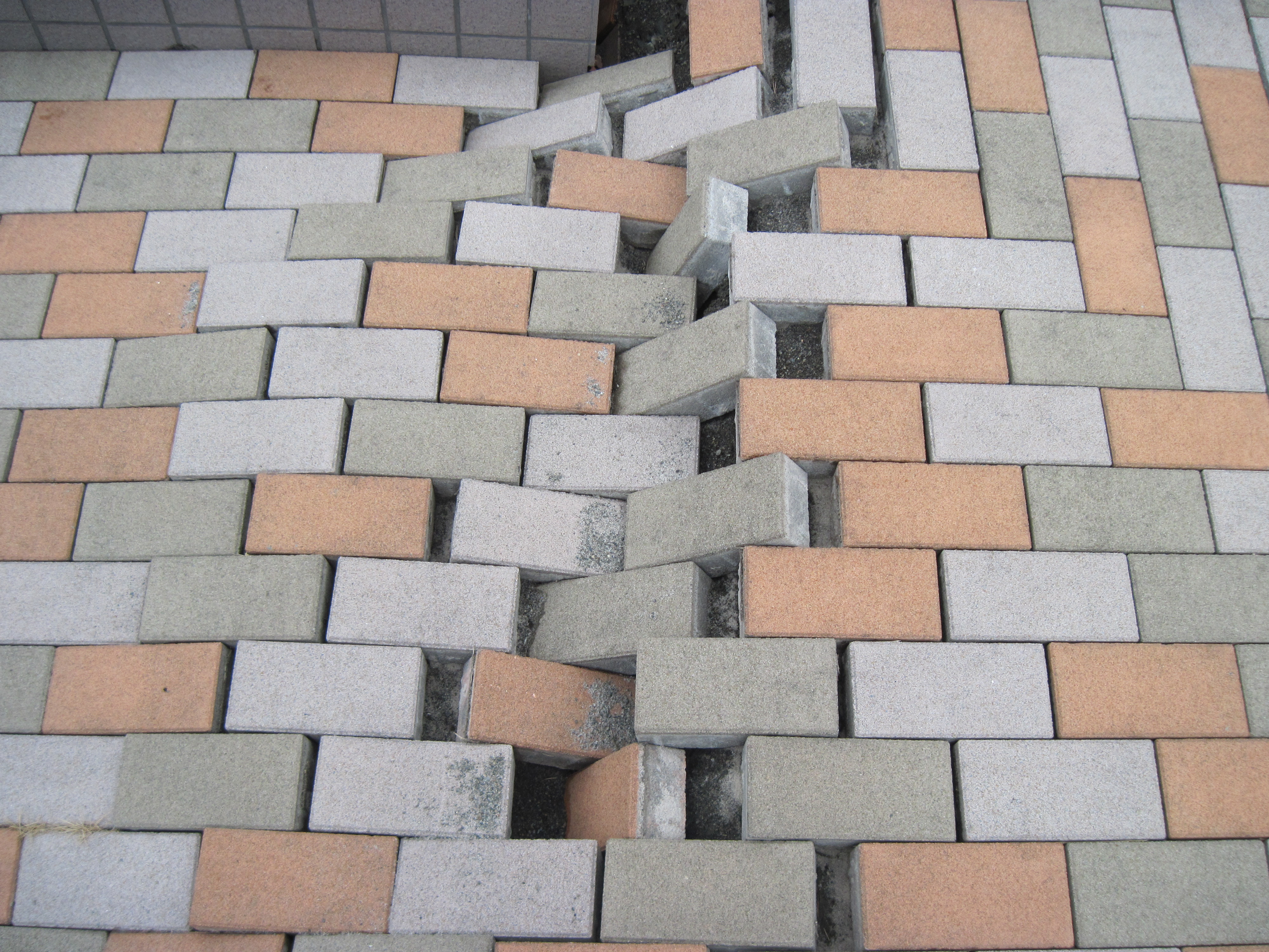 老人ホーム地割れ状況と修復作業(らふたぁヒルズ)