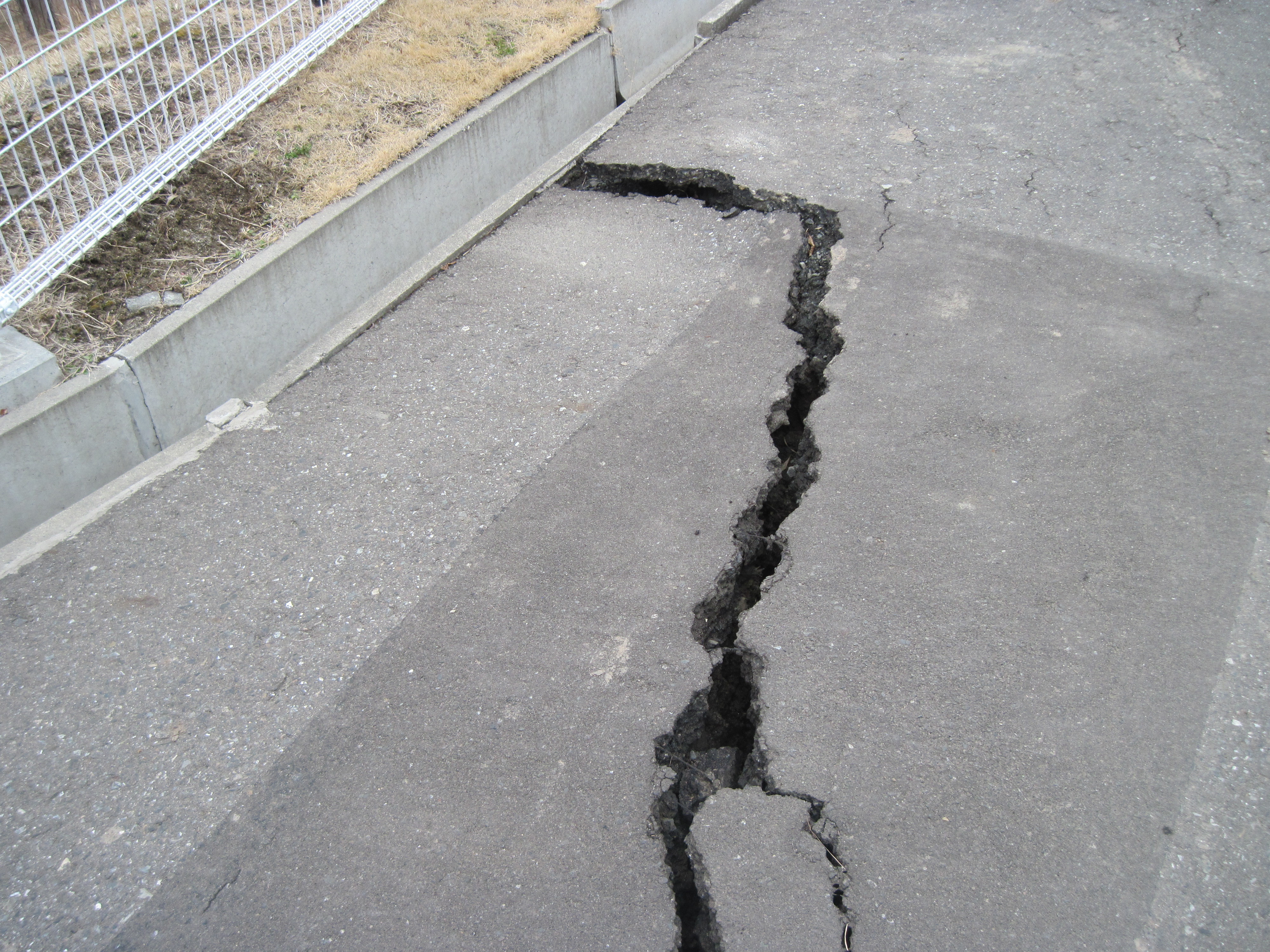 老人ホーム地割れ状況と修復作業(らふたぁヒルズ)