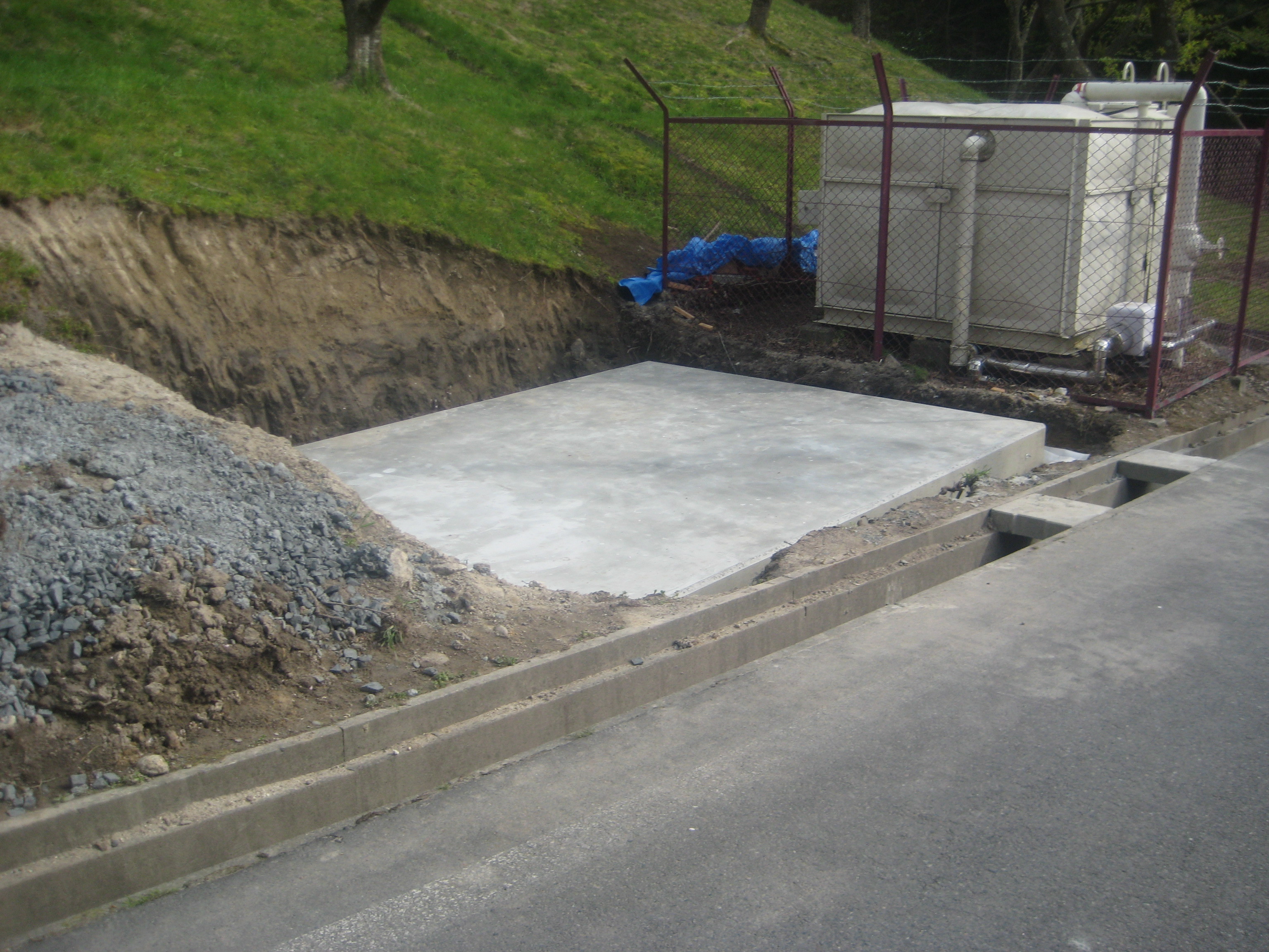 地盤沈下により老人ホームと地面の間にできた地割れ。