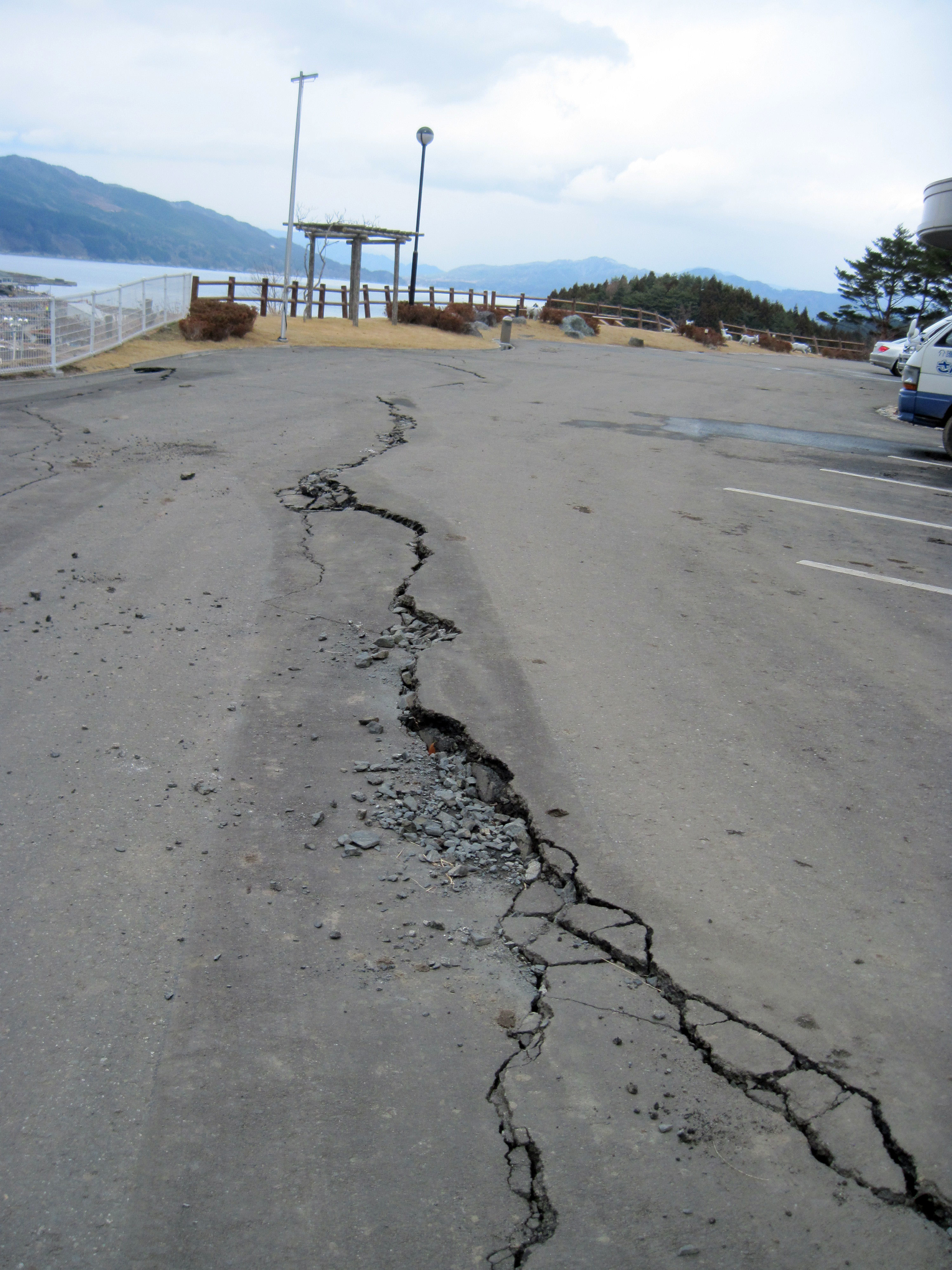老人ホーム地割れ状況と修復作業(らふたぁヒルズ)