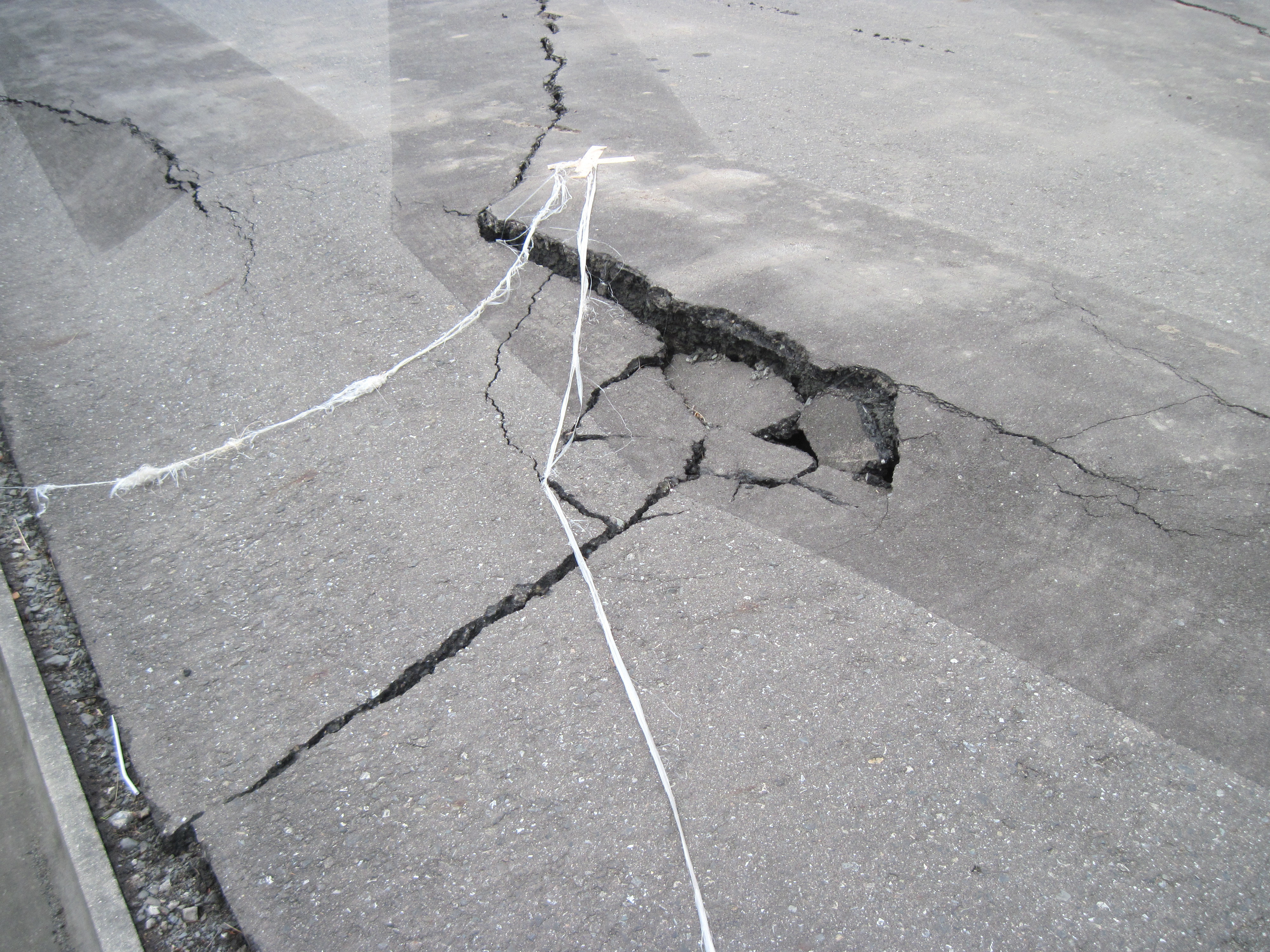 老人ホーム地割れ状況と修復作業(らふたぁヒルズ)