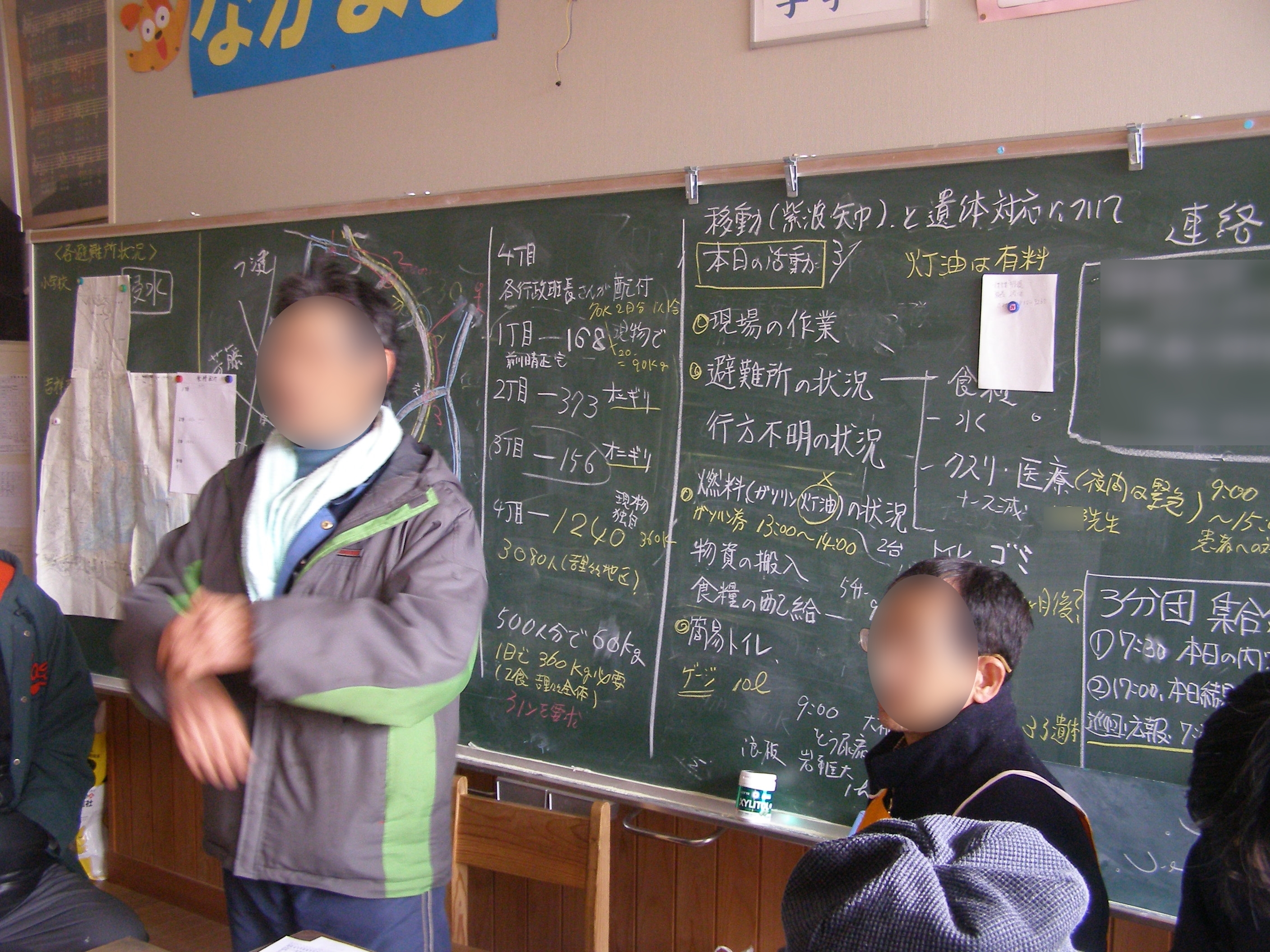 災害救援計画の話し合い(吉里吉里小学校教室)