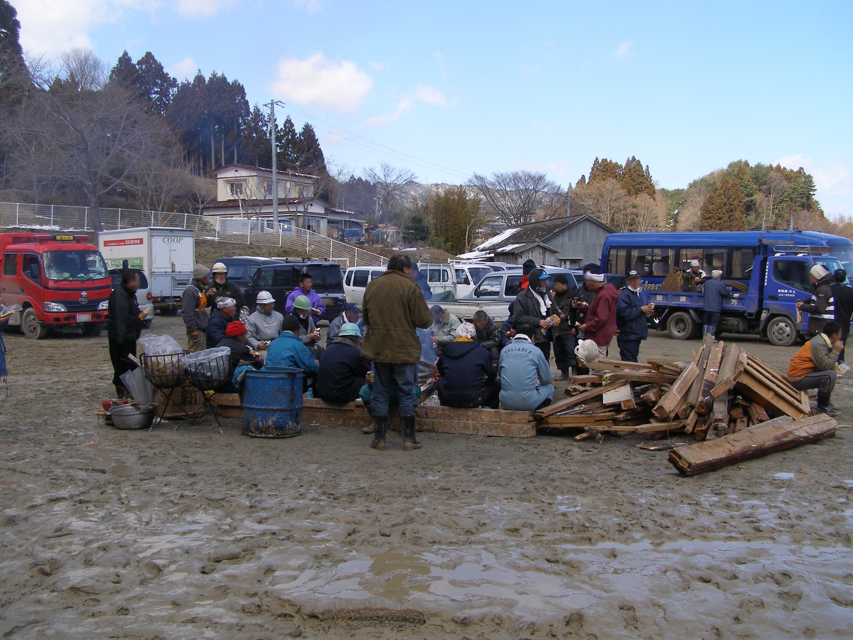 吉里吉里小学校の校庭でコーヒーを飲んだり、パンを食べたりしている