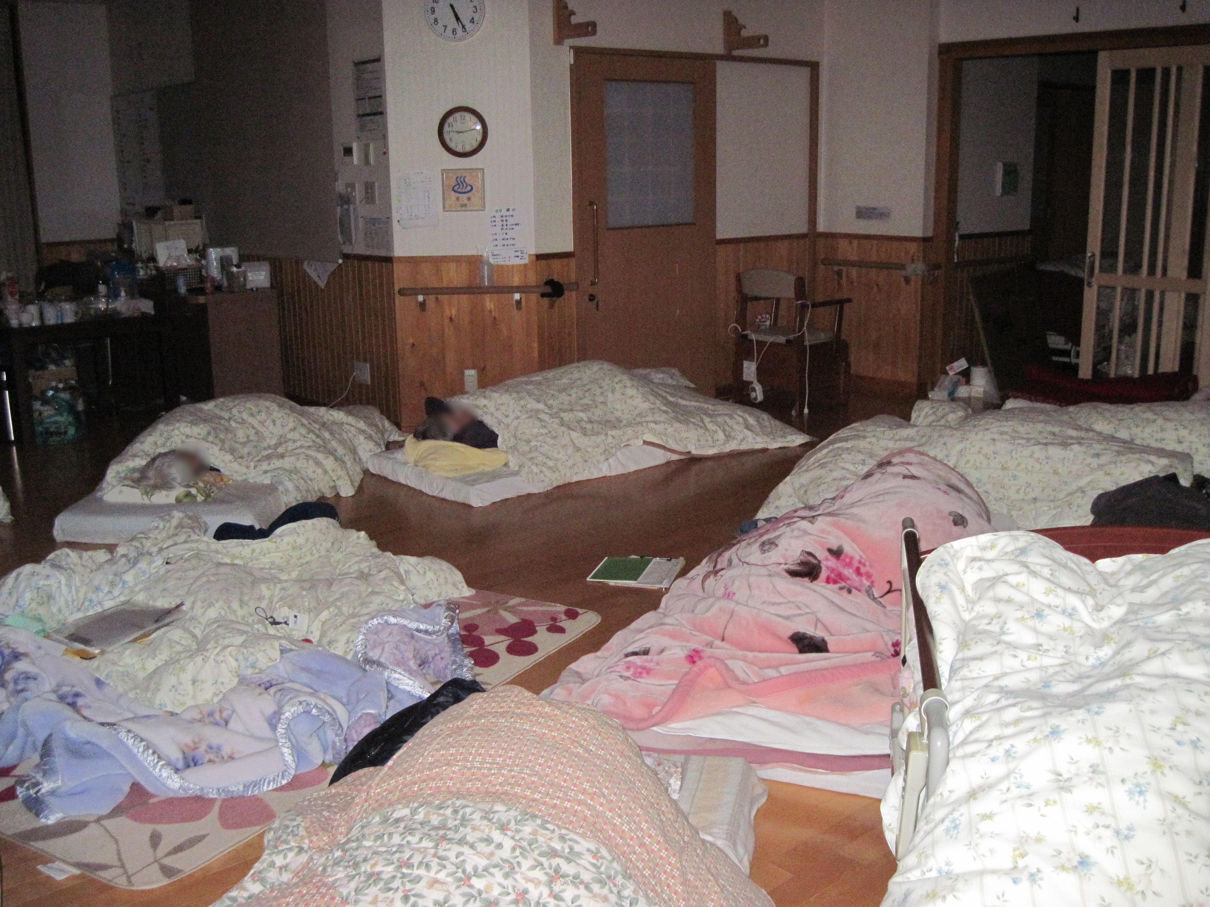避難所で寝ている人々(特別養護老人ホームらふたぁヒルズ) 拡大表示 ダウンロード 識別子 : 7493 タイトルよみ : ネテイルヒトビト 說明・要約 : 集まって老人が寝ている 作成者(撮影者) : 社会福祉法人 堤福祉会 作成者(撮影者)よみ : シャカイフクシホウジン ツツミフクシカイ 提供者 : 社会福祉法人 堤福祉会 提供者よみ : シャカイフクシホウジン ツツミフクシカイ 撮影(作成)場所 : 岩手県上閉伊郡大槌町 吉里吉里 撮影(作成)場所よみ : イワテケンカミヘイグンオオツチチョウ キリキリ 作成日・撮影日 : 2011年 3月 18日 カテゴリー : 避難所 くらし・文化 地域 : 吉里吉里地区 備考 : 一般公開