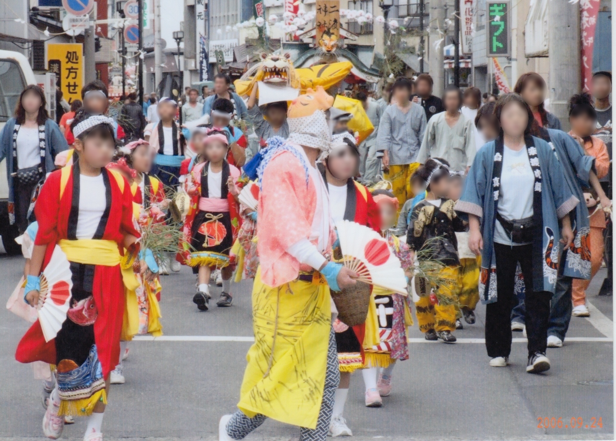 役場前を歩く安渡虎舞の子供たち
