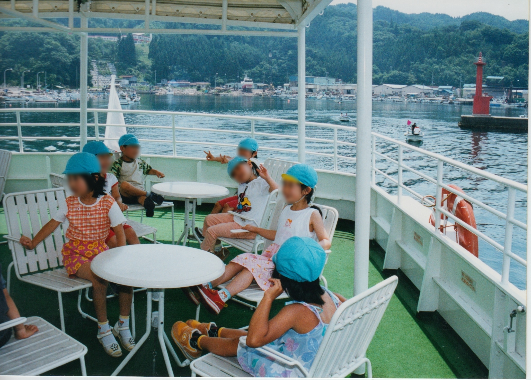 船の甲板でくつろぐ子供たち(吉里吉里,海)