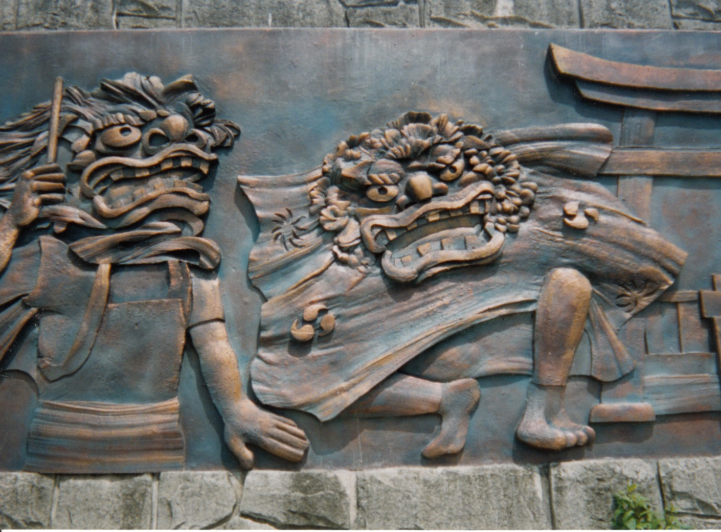 フィッシャリーナにある郷土芸能大神楽の石碑
