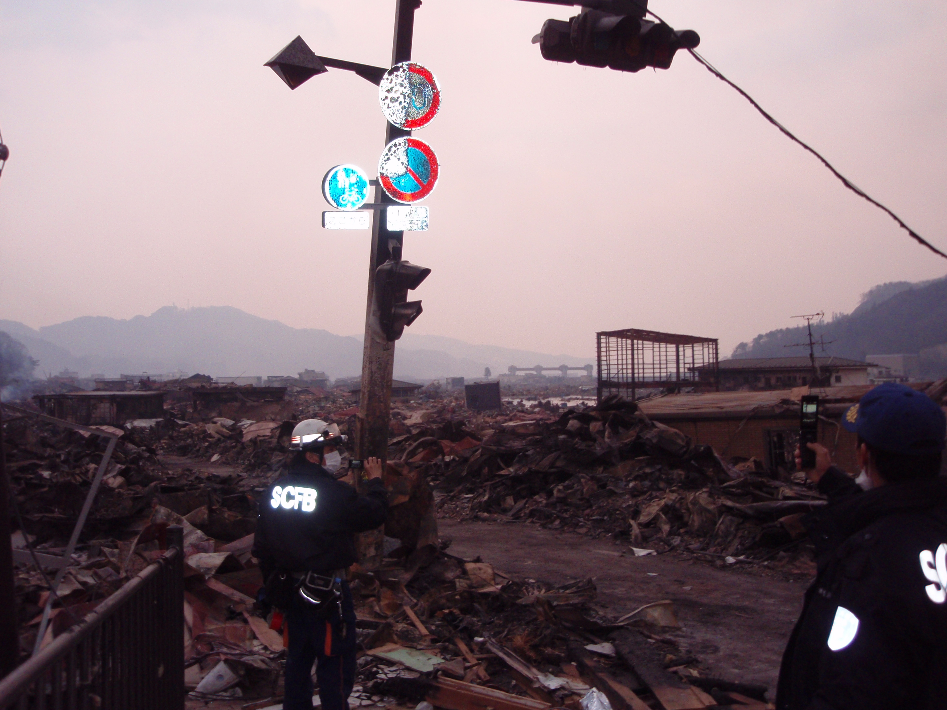 被災状況 拡大表示 ダウンロード 識別子 : 644 タイトルよみ : ヒサイジョウキョウ 說明・要約 : 焼け焦げたガレキの中で写真を撮っている堺市消防職員の様子 作成者(撮影者) : 堺市消防局 作成者(撮影者)よみ : サカイシショウボウキョク 提供者 : 堺市消防局 提供者よみ : サカイシショウボウキョク 撮影(作成)場所 : 岩手県上閉伊郡大槌町 撮影(作成)場所よみ : イワテケンカミヘイグンオオツチチョウ 作成日・撮影日 : 2011年 3月 14日 カテゴリー : 物的被害 地域 : 町方地区 備考 : 堺市消防局提供 震災事象 行政の執行 > 本部体制の強化 > 【防災関係機関(応援部隊)の支援】ご遺体の捜索から搬送、災害医療、消火活動、避難生活支援、物資搬送等、多岐に渡った。県から職員派遣等の対応があった。