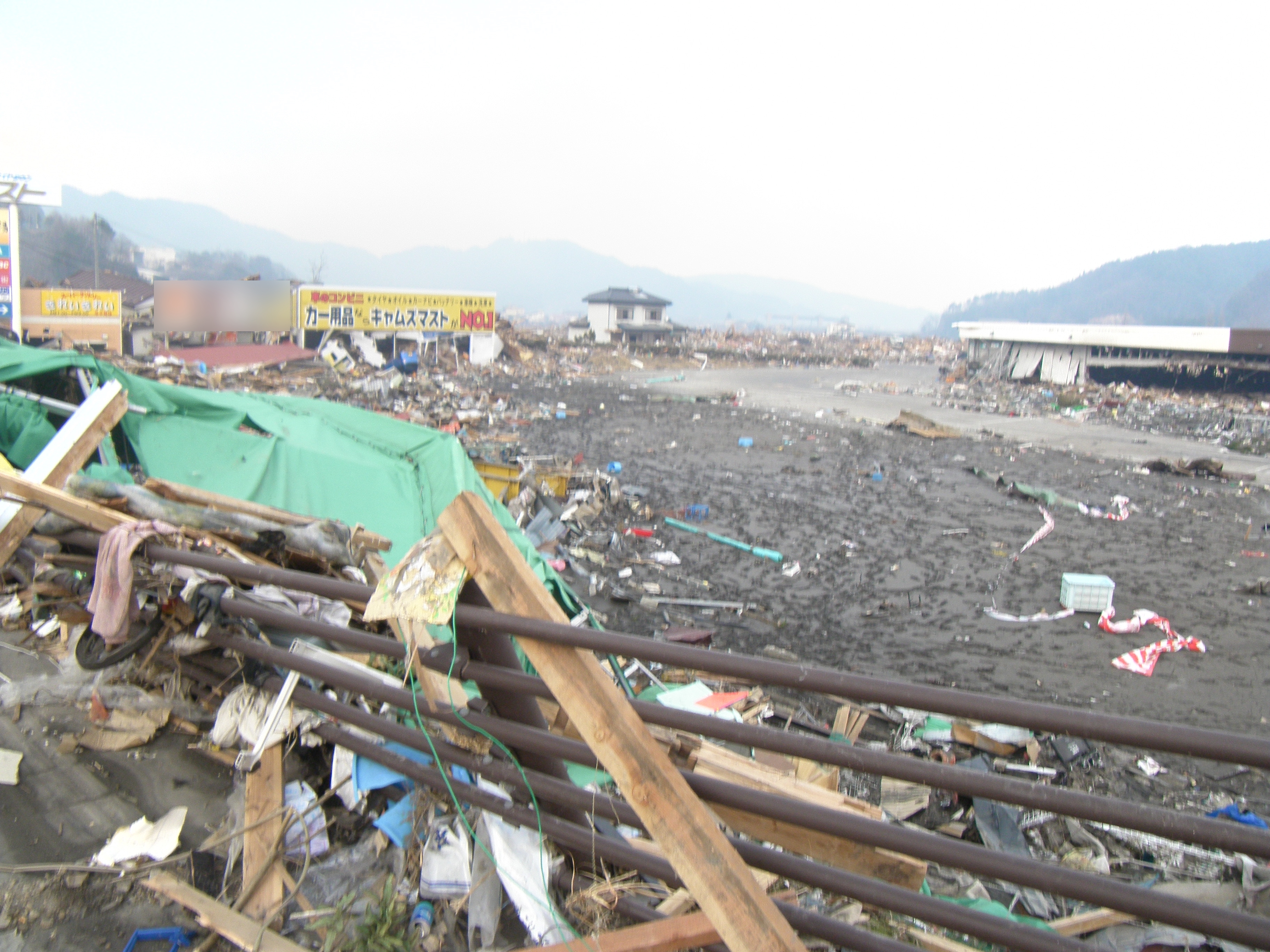 被災状況 拡大表示 ダウンロード 識別子 : 655 タイトルよみ : ヒサイジョウキョウ 說明・要約 : ガレキが散乱している駐車場の様子 作成者(撮影者) : 堺市消防局 作成者(撮影者)よみ : サカイシショウボウキョク 提供者 : 堺市消防局 提供者よみ : サカイシショウボウキョク 撮影(作成)場所 : 岩手県上閉伊郡大槌町 マスト 撮影(作成)場所よみ : イワテケンカミヘイグンオオツチチョウ マスト 作成日・撮影日 : 2011年 3月 14日 カテゴリー : 捜索 地域 : 桜木町・花輪田地区 備考 : 堺市消防局提供 震災事象 行政の執行 > 本部体制の強化 > 【防災関係機関(応援部隊)の支援】ご遺体の捜索から搬送、災害医療、消火活動、避難生活支援、物資搬送等、多岐に渡った。県から職員派遣等の対応があった。