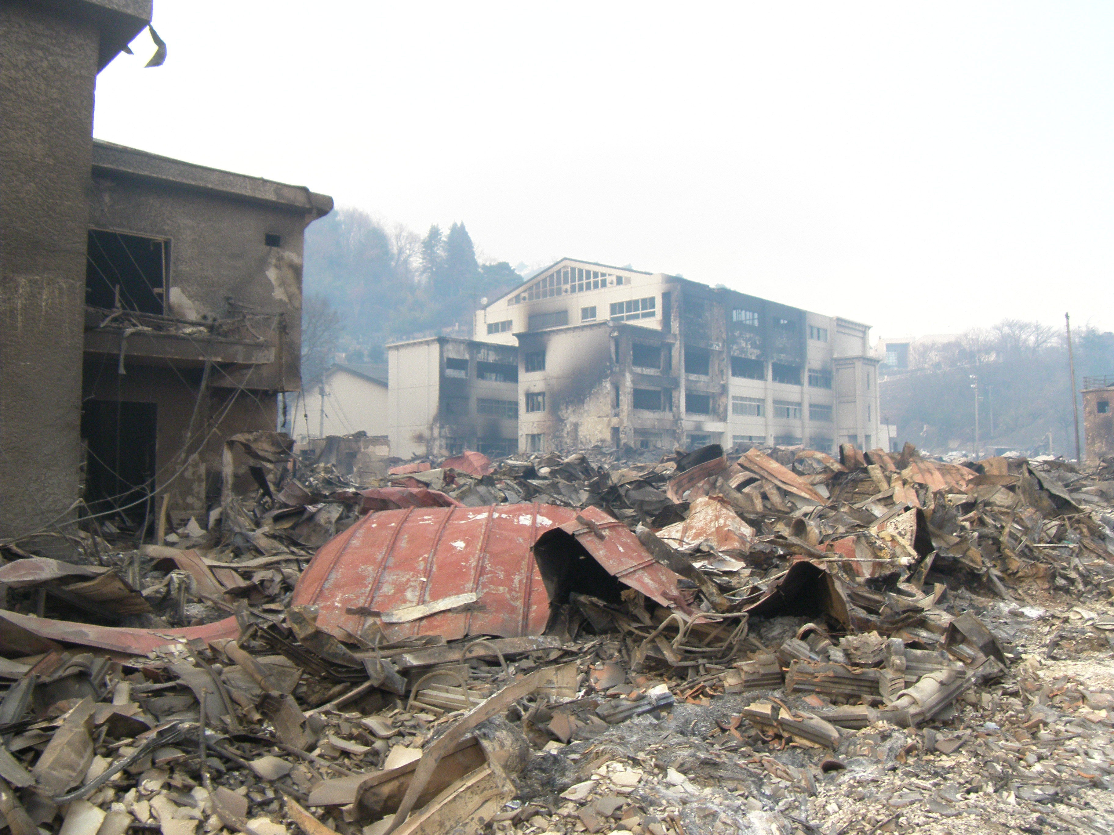 被災状況 拡大表示 ダウンロード 識別子 : 660 タイトルよみ : ヒサイジョウキョウ 說明・要約 : 火災にあった旧大槌小学校と周辺の焼け焦げたガレキの様子 作成者(撮影者) : 堺市消防局 作成者(撮影者)よみ : サカイシショウボウキョク 提供者 : 堺市消防局 提供者よみ : サカイシショウボウキョク 撮影(作成)場所 : 岩手県上閉伊郡大槌町 上町 撮影(作成)場所よみ : イワテケンカミヘイグンオオツチチョウ カミチョウ 作成日・撮影日 : 2011年 3月 14日 カテゴリー : 物的被害 地域 : 町方地区 備考 : 堺市消防局提供 震災事象 行政の執行 > 本部体制の強化 > 【防災関係機関(応援部隊)の支援】ご遺体の捜索から搬送、災害医療、消火活動、避難生活支援、物資搬送等、多岐に渡った。県から職員派遣等の対応があった。