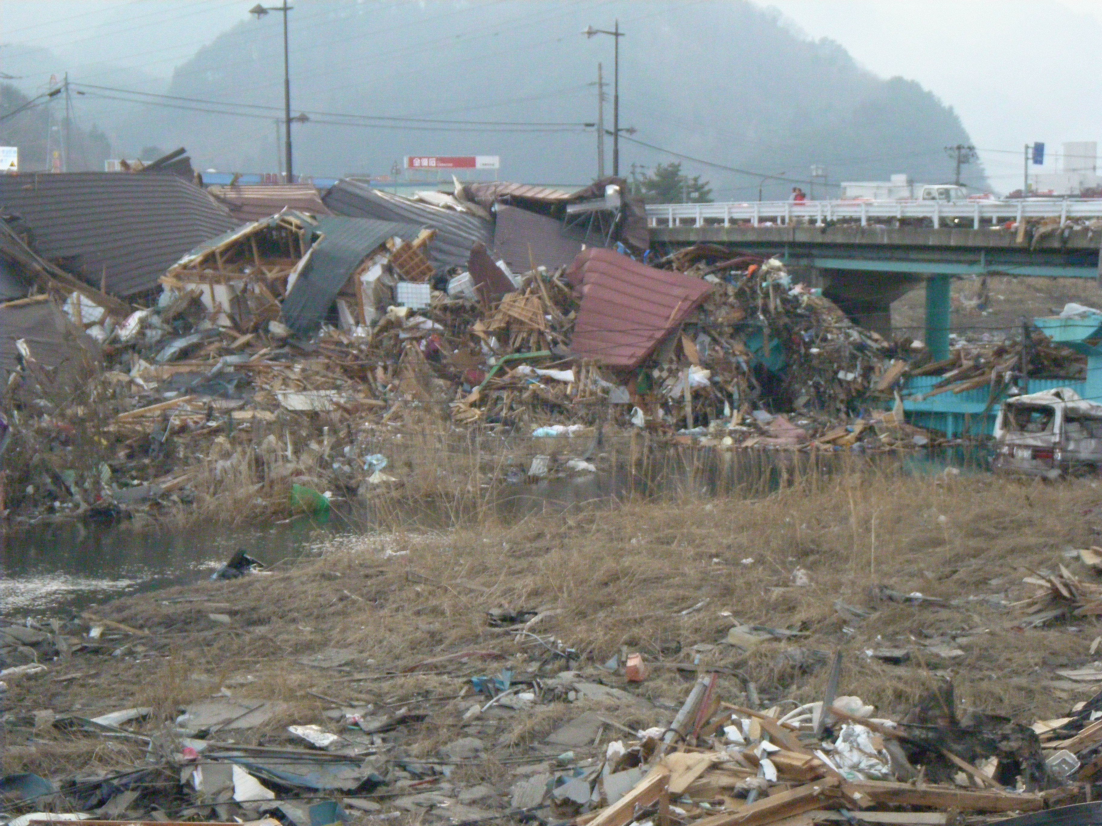 被災状況 拡大表示 ダウンロード 識別子 : 683 タイトルよみ : ヒサイジョウキョウ 說明・要約 : ガレキが散乱している小鎚川周辺の様子 作成者(撮影者) : 堺市消防局 作成者(撮影者)よみ : サカイシショウボウキョク 提供者 : 堺市消防局 提供者よみ : サカイシショウボウキョク 撮影(作成)場所 : 岩手県上閉伊郡大槌町 撮影(作成)場所よみ : イワテケンカミヘイグンオオツチチョウ 作成日・撮影日 : 2011年 3月 14日 カテゴリー : 被害 物的被害 被災状況 地域 : 桜木町・花輪田地区 備考 : 堺市消防局提供 震災事象 行政の執行 > 本部体制の強化 > 【防災関係機関(応援部隊)の支援】ご遺体の捜索から搬送、災害医療、消火活動、避難生活支援、物資搬送等、多岐に渡った。県から職員派遣等の対応があった。