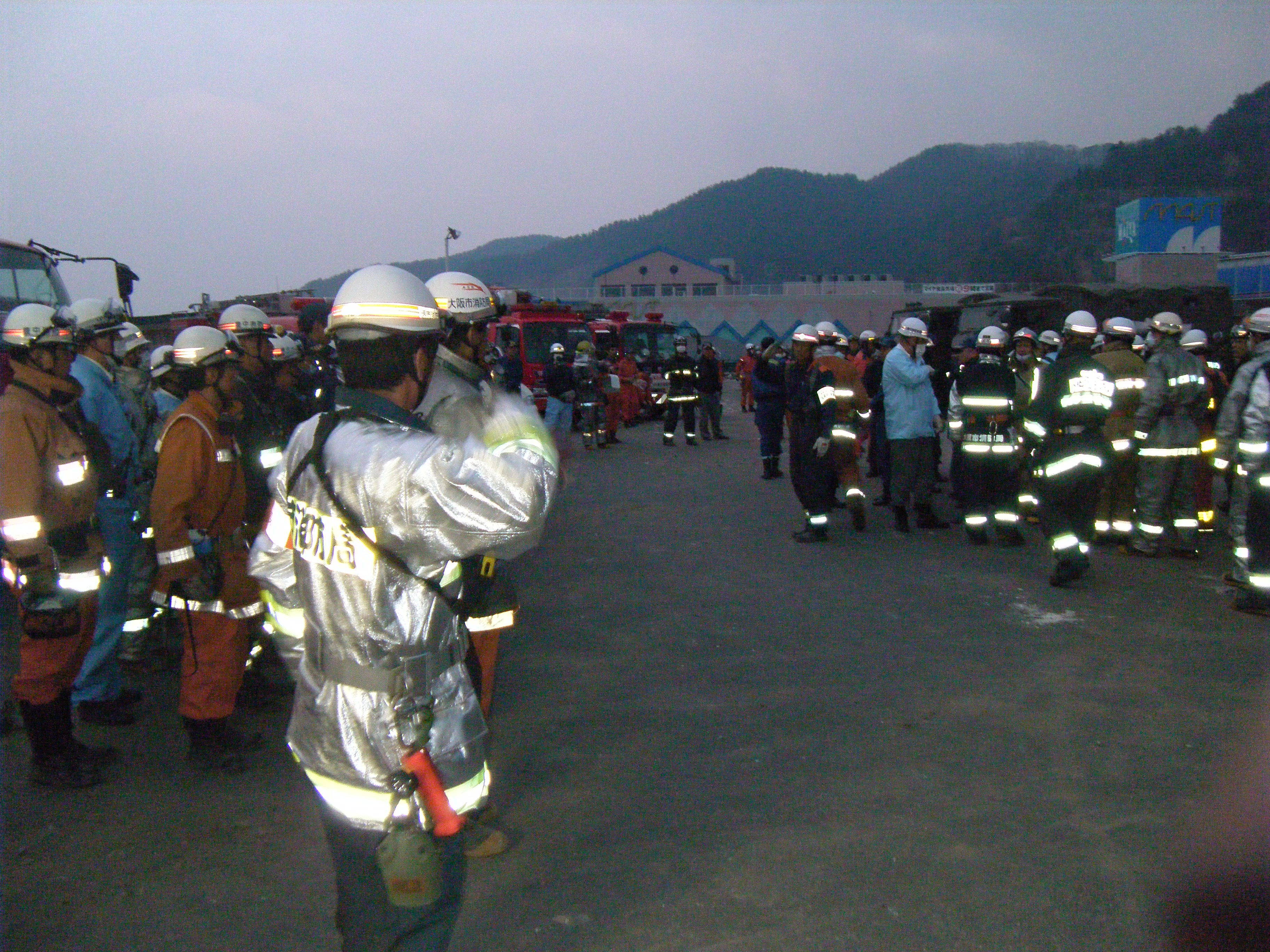 捜索活動の様子 拡大表示 ダウンロード 識別子 : 699 タイトルよみ : ソウサクカツドウノヨウス 說明・要約 : 駐車場に整列している消防隊員の様子 作成者(撮影者) : 堺市消防局 作成者(撮影者)よみ : サカイシショウボウキョク 提供者 : 堺市消防局 提供者よみ : サカイシショウボウキョク 撮影(作成)場所 : 岩手県上閉伊郡大槌町 花輪田 撮影(作成)場所よみ : イワテケンカミヘイグンオオツチチョウ ハナワダ 作成日・撮影日 : 2011年 3月 14日 カテゴリー : 捜索 地域 : 桜木町・花輪田地区 備考 : 堺市消防局提供 震災事象 行政の執行 > 本部体制の強化 > 【防災関係機関(応援部隊)の支援】ご遺体の捜索から搬送、災害医療、消火活動、避難生活支援、物資搬送等、多岐に渡った。県から職員派遣等の対応があった。