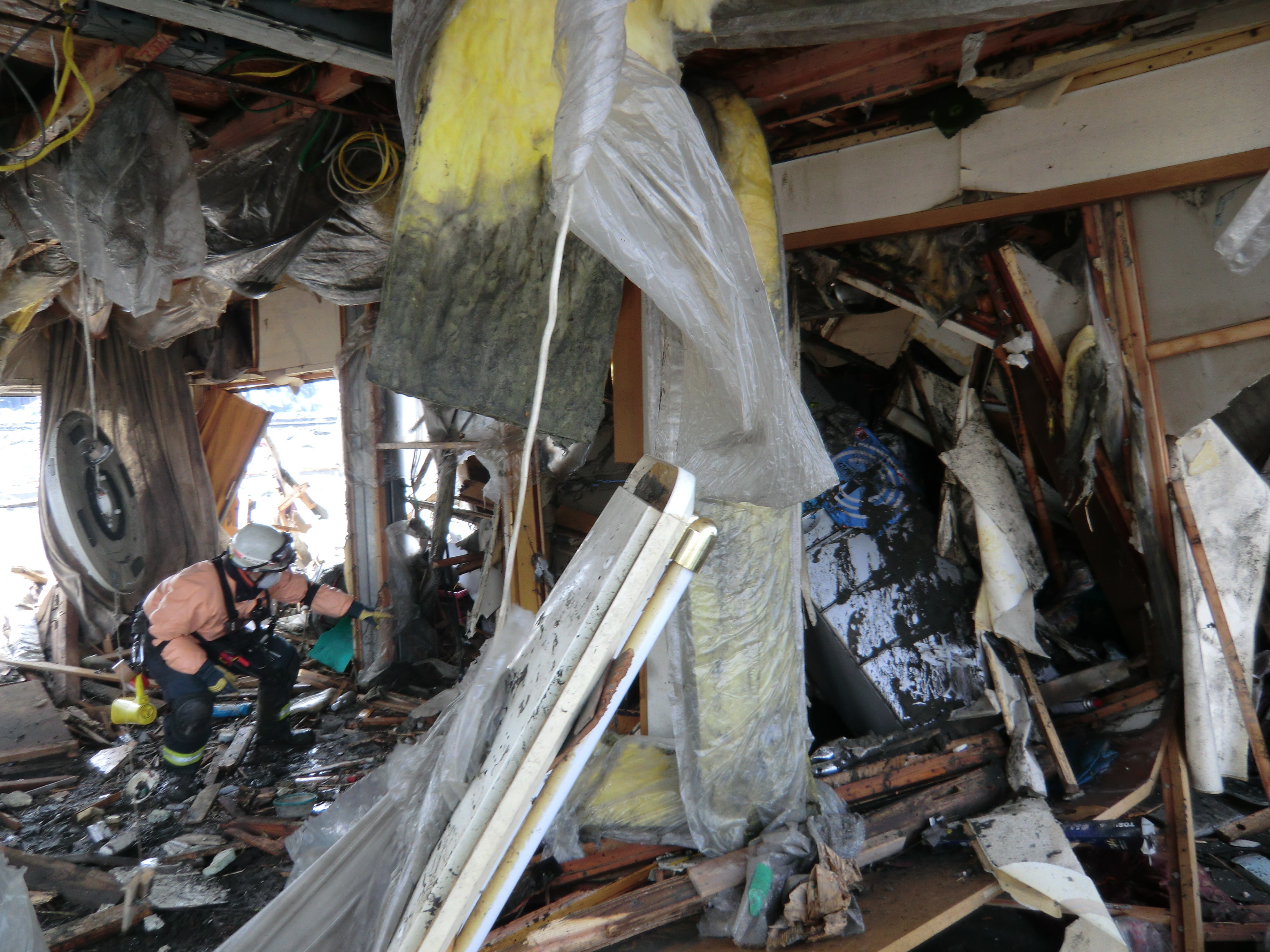 捜索活動の様子 拡大表示 ダウンロード 識別子 : 702 タイトルよみ : ソウサクカツドウノヨウス 說明・要約 : 被災した建物の中で捜索活動をしている消防隊員の様子 作成者(撮影者) : 堺市消防局 作成者(撮影者)よみ : サカイシショウボウキョク 提供者 : 堺市消防局 提供者よみ : サカイシショウボウキョク 撮影(作成)場所 : 岩手県上閉伊郡大槌町 大槌町 撮影(作成)場所よみ : イワテケンカミヘイグンオオツチチョウ オオツチチョウ 作成日・撮影日 : 2011年 3月 16日 カテゴリー : 捜索 地域 : その他 備考 : 堺市消防局提供 震災事象 行政の執行 > 本部体制の強化 > 【防災関係機関(応援部隊)の支援】ご遺体の捜索から搬送、災害医療、消火活動、避難生活支援、物資搬送等、多岐に渡った。県から職員派遣等の対応があった。