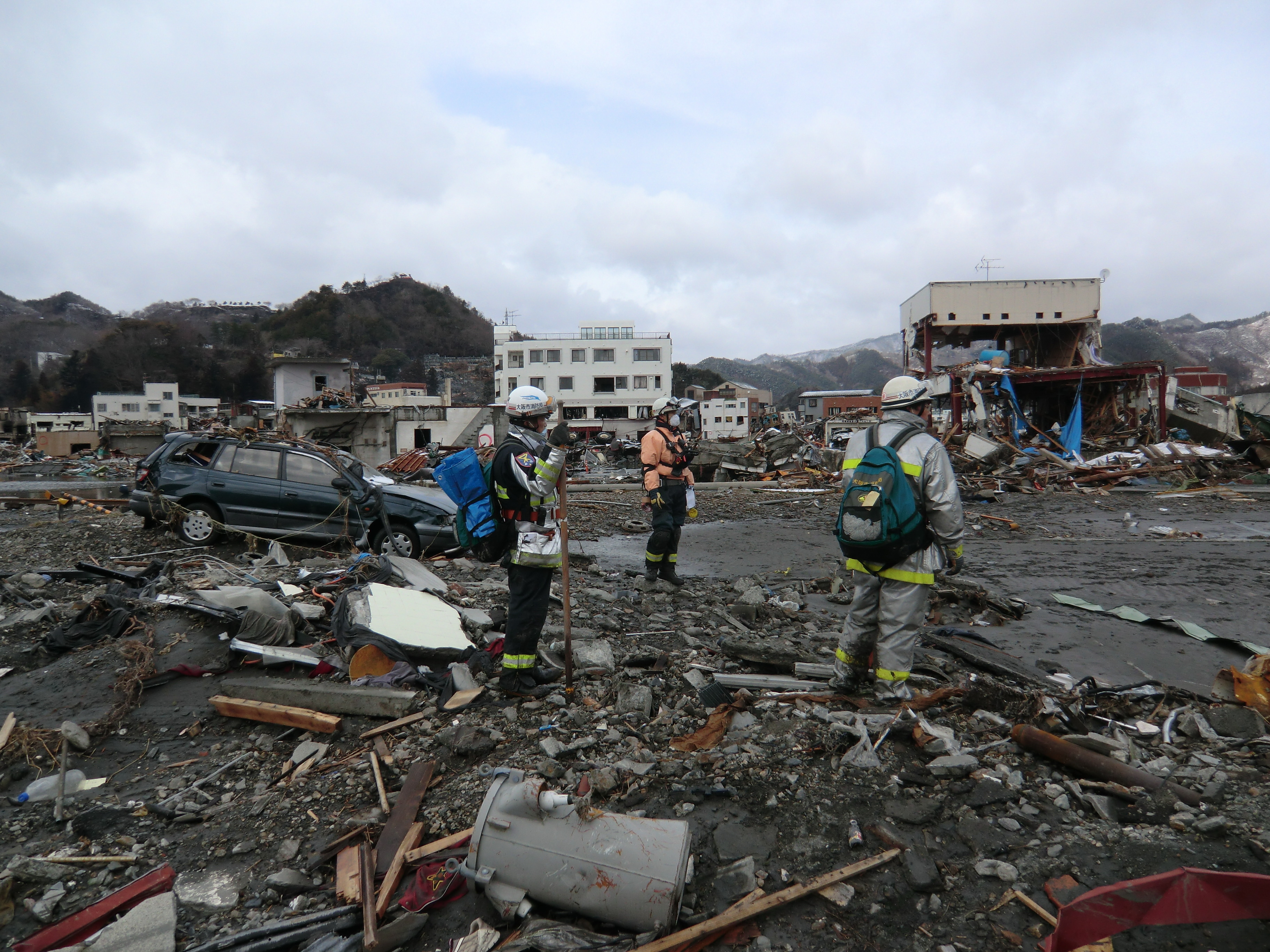 捜索活動の様子 拡大表示 ダウンロード 識別子 : 713 タイトルよみ : ソウサクカツドウノヨウス 說明・要約 : ガレキの中で捜索活動をしている消防隊員の様子 作成者(撮影者) : 堺市消防局 作成者(撮影者)よみ : サカイシショウボウキョク 提供者 : 堺市消防局 提供者よみ : サカイシショウボウキョク 撮影(作成)場所 : 岩手県上閉伊郡大槌町 撮影(作成)場所よみ : イワテケンカミヘイグンオオツチチョウ 作成日・撮影日 : 2011年 3月 16日 カテゴリー : 捜索 地域 : 町方地区 備考 : 堺市消防局提供 震災事象 行政の執行 > 本部体制の強化 > 【防災関係機関(応援部隊)の支援】ご遺体の捜索から搬送、災害医療、消火活動、避難生活支援、物資搬送等、多岐に渡った。県から職員派遣等の対応があった。