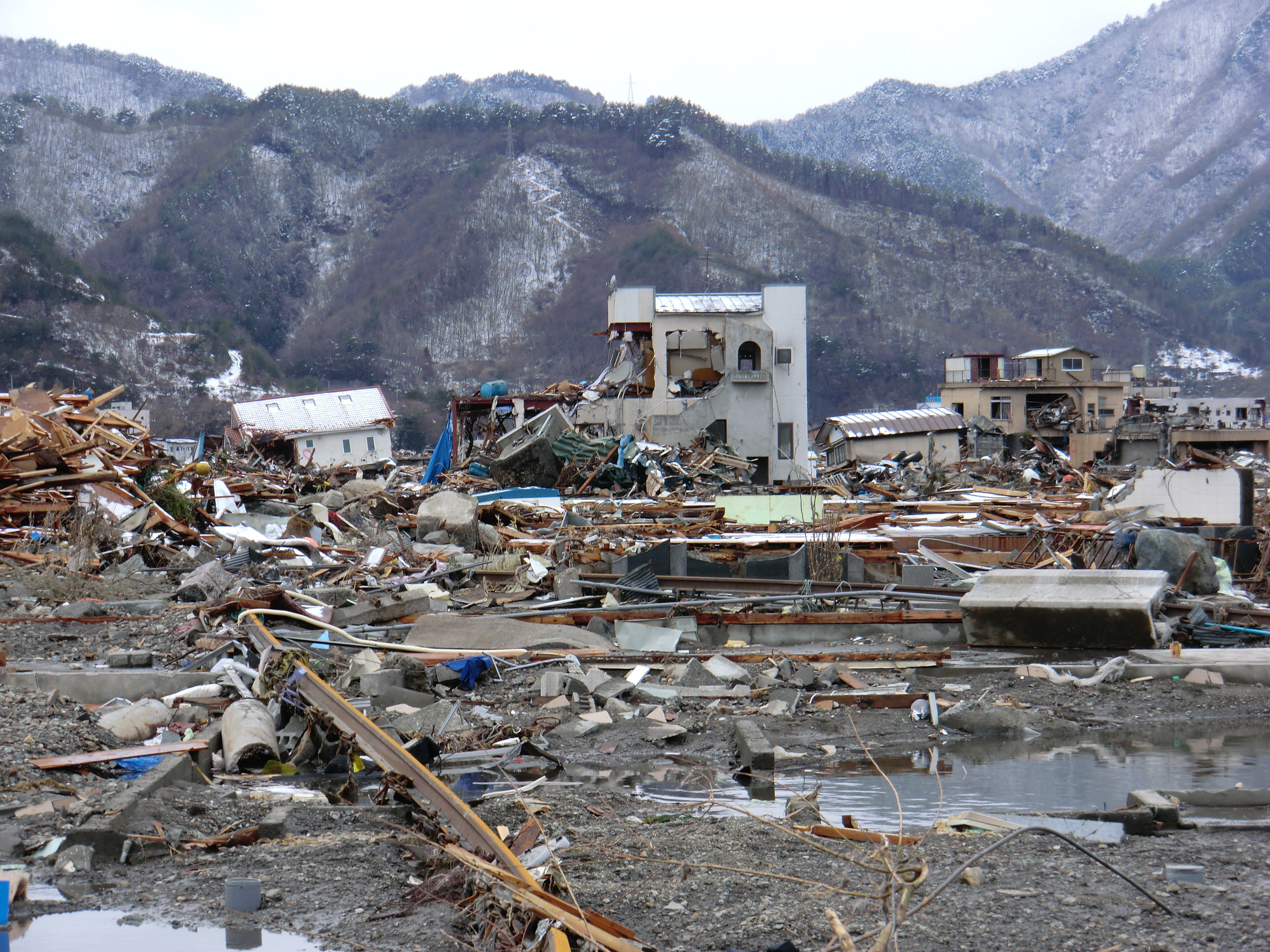 被災状況 拡大表示 ダウンロード 識別子 : 723 タイトルよみ : ヒサイジョウキョウ 說明・要約 : 被災した建物とガレキが散乱している様子 作成者(撮影者) : 堺市消防局 作成者(撮影者)よみ : サカイシショウボウキョク 提供者 : 堺市消防局 提供者よみ : サカイシショウボウキョク 撮影(作成)場所 : 岩手県上閉伊郡大槌町 撮影(作成)場所よみ : イワテケンカミヘイグンオオツチチョウ 作成日・撮影日 : 2011年 3月 16日 カテゴリー : 物的被害 地域 : 町方地区 備考 : 堺市消防局提供 震災事象 行政の執行 > 本部体制の強化 > 【防災関係機関(応援部隊)の支援】ご遺体の捜索から搬送、災害医療、消火活動、避難生活支援、物資搬送等、多岐に渡った。県から職員派遣等の対応があった。