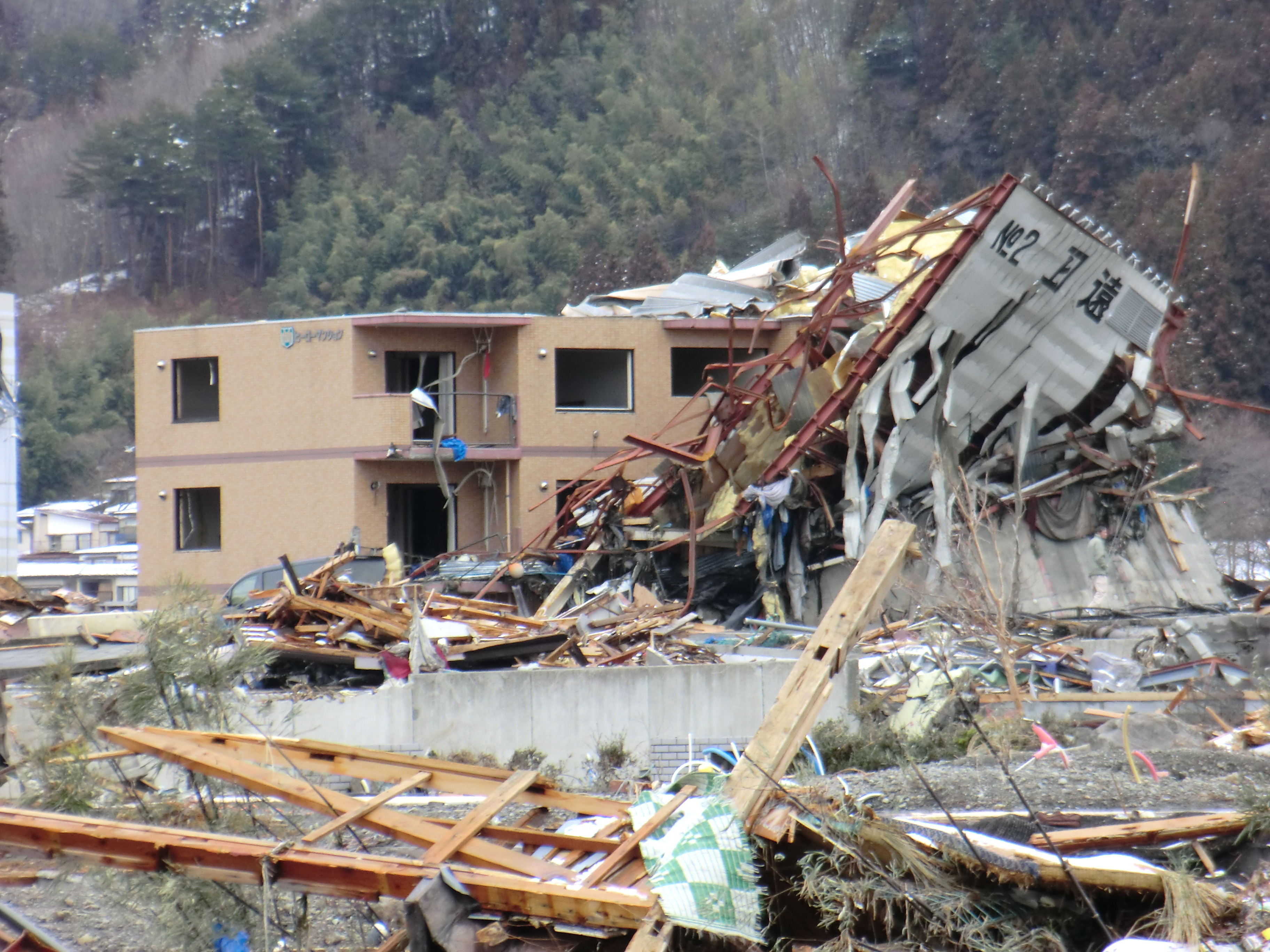被災状況 拡大表示 ダウンロード 識別子 : 724 タイトルよみ : ヒサイジョウキョウ 說明・要約 : 被災した建物とガレキが散乱している様子 作成者(撮影者) : 堺市消防局 作成者(撮影者)よみ : サカイシショウボウキョク 提供者 : 堺市消防局 提供者よみ : サカイシショウボウキョク 撮影(作成)場所 : 岩手県上閉伊郡大槌町 大槌町 撮影(作成)場所よみ : イワテケンカミヘイグンオオツチチョウ オオツチチョウ 作成日・撮影日 : 2011年 3月 16日 カテゴリー : 物的被害 地域 : その他 備考 : 堺市消防局提供 震災事象 行政の執行 > 本部体制の強化 > 【防災関係機関(応援部隊)の支援】ご遺体の捜索から搬送、災害医療、消火活動、避難生活支援、物資搬送等、多岐に渡った。県から職員派遣等の対応があった。