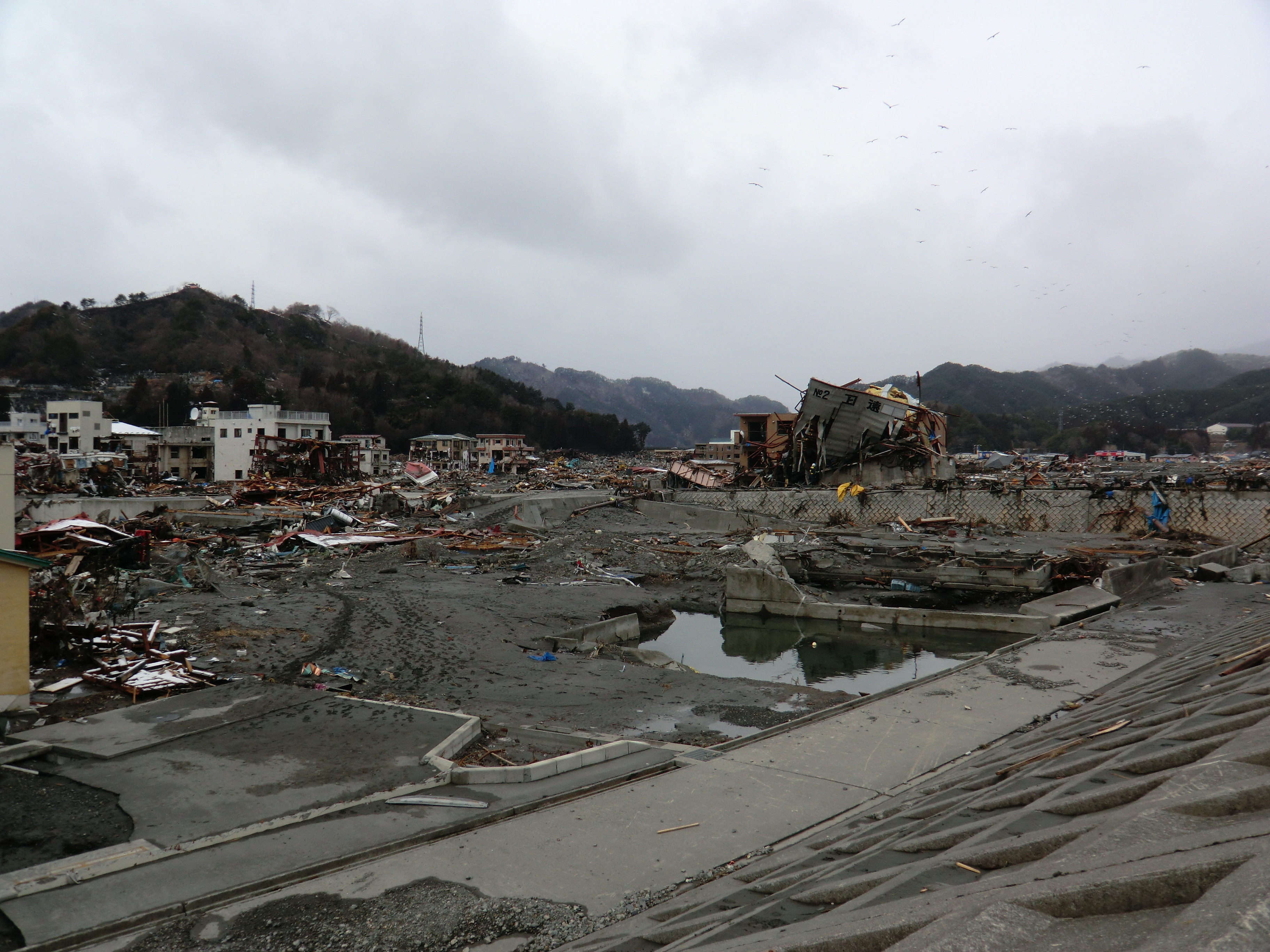 被災状況 拡大表示 ダウンロード 識別子 : 732 タイトルよみ : ヒサイジョウキョウ 說明・要約 : 被災した建物とガレキが散乱している様子 作成者(撮影者) : 堺市消防局 作成者(撮影者)よみ : サカイシショウボウキョク 提供者 : 堺市消防局 提供者よみ : サカイシショウボウキョク 撮影(作成)場所 : 岩手県上閉伊郡大槌町 大町 撮影(作成)場所よみ : イワテケンカミヘイグンオオツチチョウ オオマチ 作成日・撮影日 : 2011年 3月 16日 カテゴリー : 物的被害 地域 : 町方地区 備考 : 堺市消防局提供 震災事象 行政の執行 > 本部体制の強化 > 【防災関係機関(応援部隊)の支援】ご遺体の捜索から搬送、災害医療、消火活動、避難生活支援、物資搬送等、多岐に渡った。県から職員派遣等の対応があった。