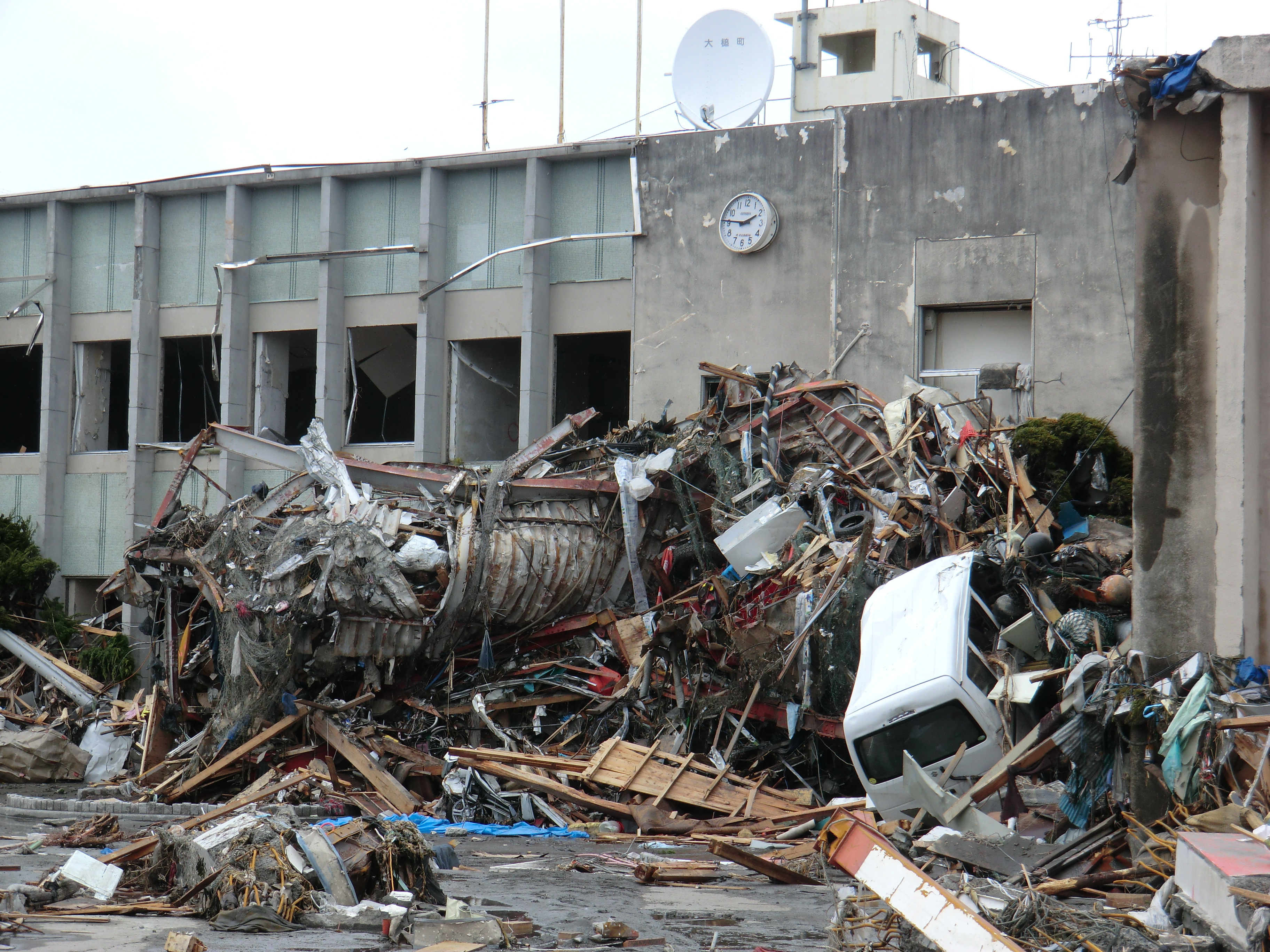 被災状況 拡大表示 ダウンロード 識別子 : 742 タイトルよみ : ヒサイジョウキョウ 說明・要約 : 被災した旧大槌町役場庁舎とガレキが散乱している様子 作成者(撮影者) : 堺市消防局 作成者(撮影者)よみ : サカイシショウボウキョク 提供者 : 堺市消防局 提供者よみ : サカイシショウボウキョク 撮影(作成)場所 : 岩手県上閉伊郡大槌町 旧役場庁舎 撮影(作成)場所よみ : イワテケンカミヘイグンオオツチチョウ キュウヤクバチョウシャ 作成日・撮影日 : 2011年 3月 16日 カテゴリー : 物的被害 地域 : 町方地区 備考 : 堺市消防局提供 震災事象 行政の執行 > 本部体制の強化 > 【防災関係機関(応援部隊)の支援】ご遺体の捜索から搬送、災害医療、消火活動、避難生活支援、物資搬送等、多岐に渡った。県から職員派遣等の対応があった。