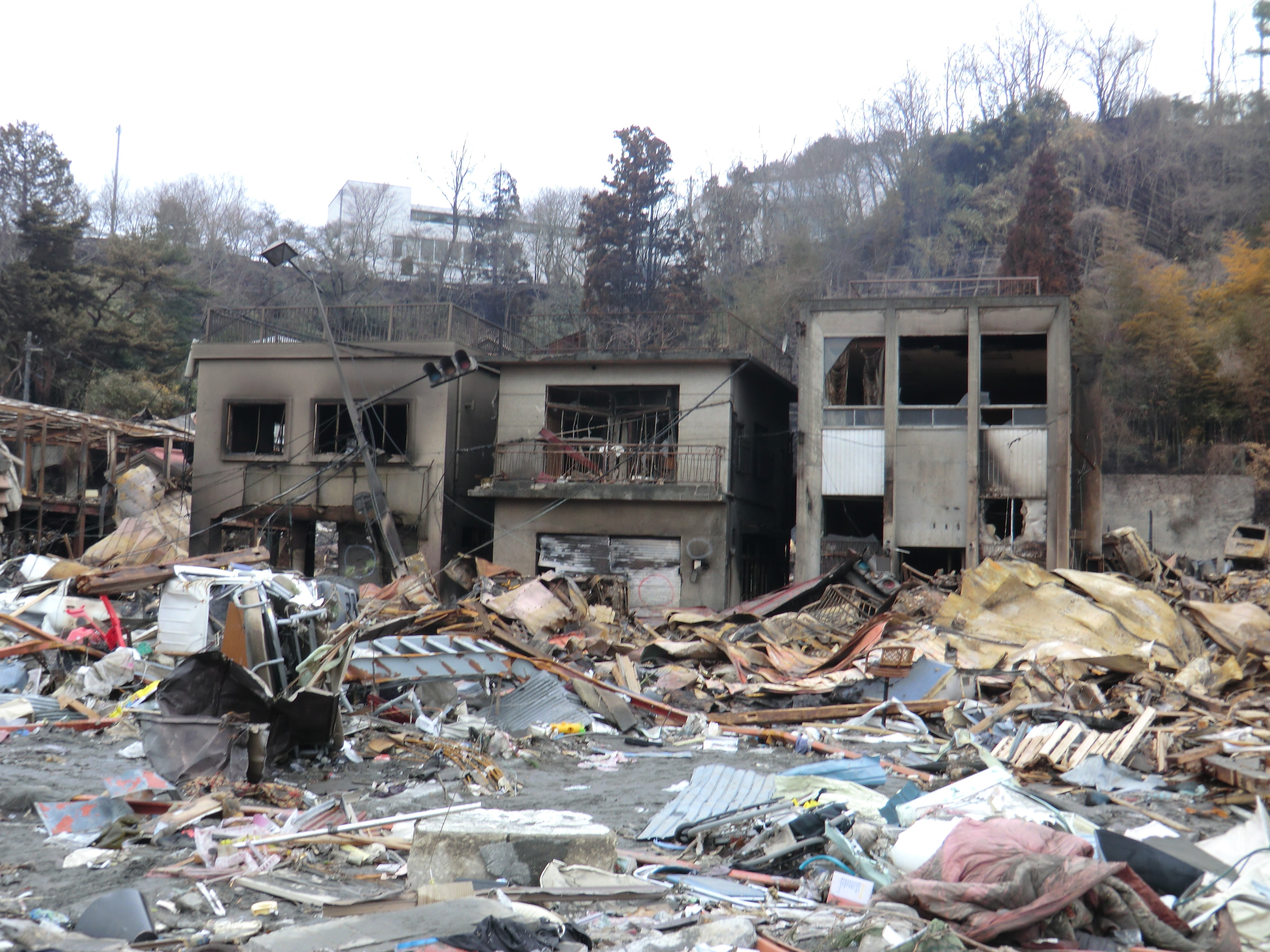 被災状況 拡大表示 ダウンロード 識別子 : 751 タイトルよみ : ヒサイジョウキョウ 說明・要約 : 火災にあった建物とガレキが散乱している様子 作成者(撮影者) : 堺市消防局 作成者(撮影者)よみ : サカイシショウボウキョク 提供者 : 堺市消防局 提供者よみ : サカイシショウボウキョク 撮影(作成)場所 : 岩手県上閉伊郡大槌町 末広町 撮影(作成)場所よみ : イワテケンカミヘイグンオオツチチョウ スエヒロチョウ 作成日・撮影日 : 2011年 3月 16日 カテゴリー : 物的被害 地域 : 町方地区 備考 : 堺市消防局提供 震災事象 行政の執行 > 本部体制の強化 > 【防災関係機関(応援部隊)の支援】ご遺体の捜索から搬送、災害医療、消火活動、避難生活支援、物資搬送等、多岐に渡った。県から職員派遣等の対応があった。