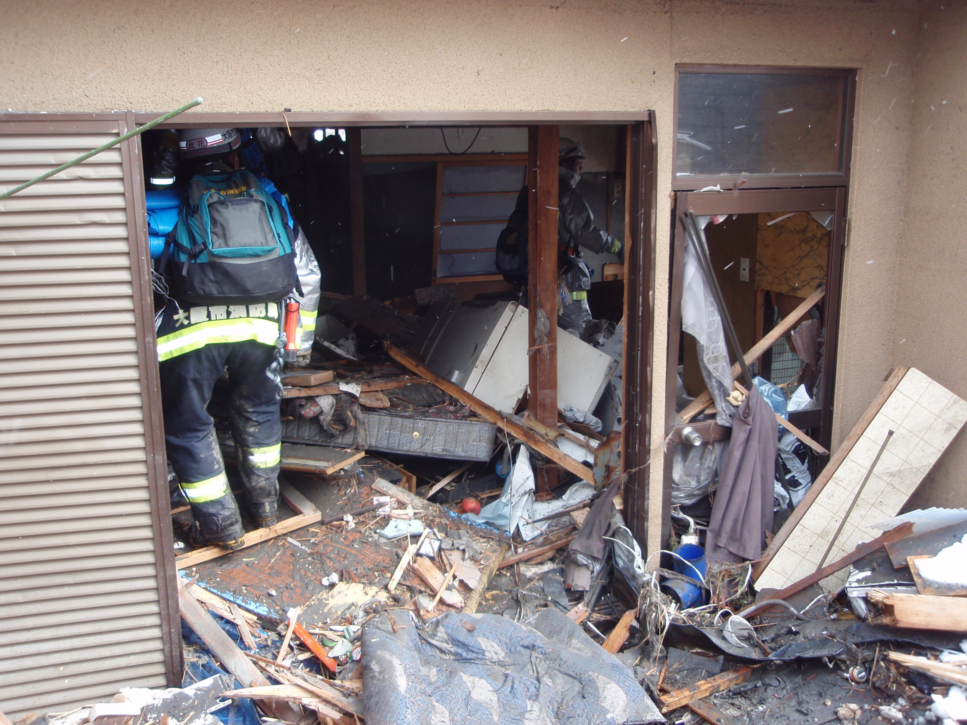 捜索活動の様子 拡大表示 ダウンロード 識別子 : 767 タイトルよみ : ソウサクカツドウノヨウス 說明・要約 : 被災した建物の中で捜索活動をしている消防隊員の様子 作成者(撮影者) : 堺市消防局 作成者(撮影者)よみ : サカイシショウボウキョク 提供者 : 堺市消防局 提供者よみ : サカイシショウボウキョク 撮影(作成)場所 : 岩手県上閉伊郡大槌町 大槌町 撮影(作成)場所よみ : イワテケンカミヘイグンオオツチチョウ オオツチチョウ 作成日・撮影日 : 2011年 3月 16日 カテゴリー : 捜索 地域 : その他 備考 : 堺市消防局提供 震災事象 行政の執行 > 本部体制の強化 > 【防災関係機関(応援部隊)の支援】ご遺体の捜索から搬送、災害医療、消火活動、避難生活支援、物資搬送等、多岐に渡った。県から職員派遣等の対応があった。