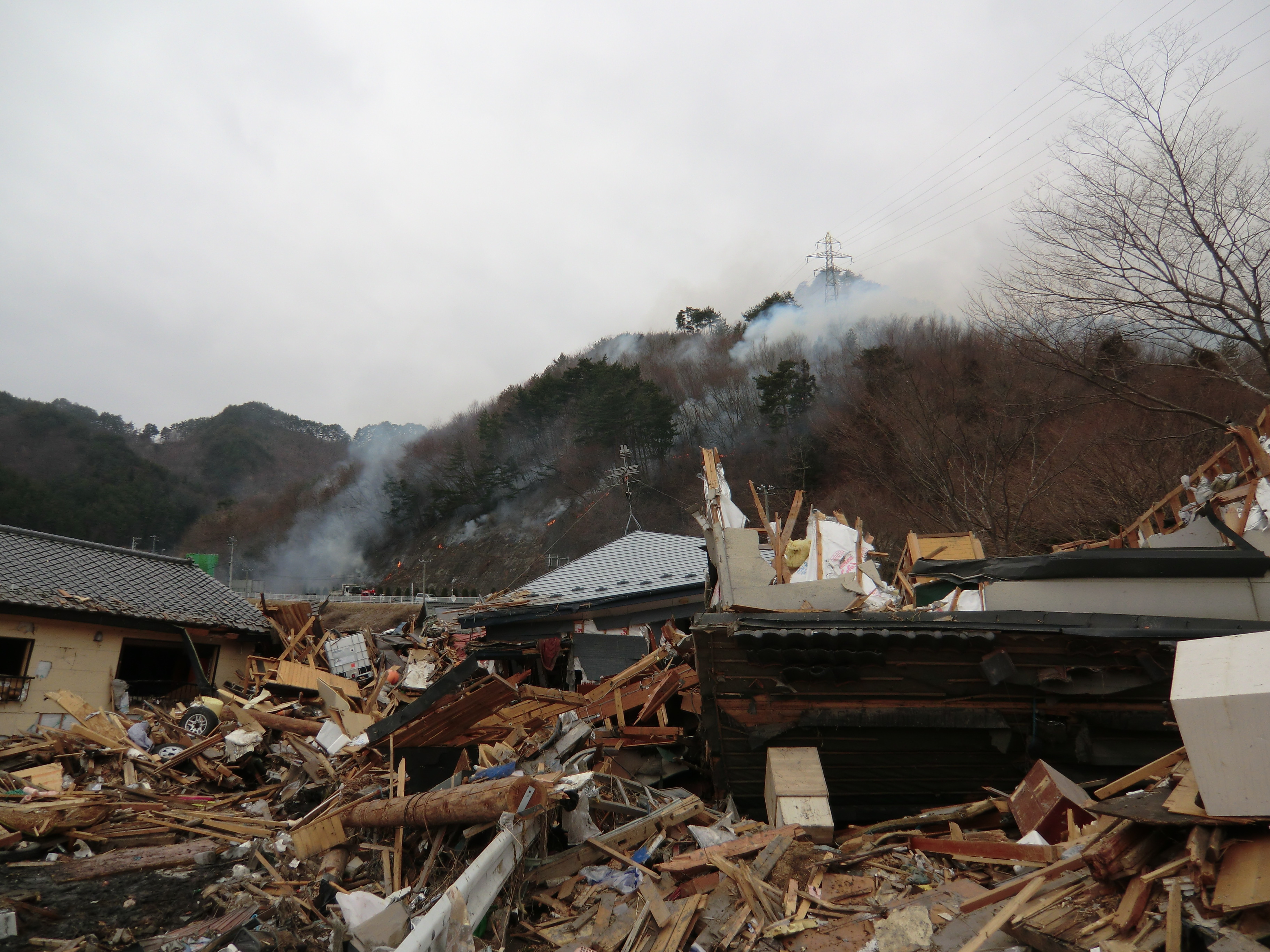 消火活動の様子 拡大表示 ダウンロード 識別子 : 796 タイトルよみ : ショウカカツドウノヨウス 說明・要約 : 小鎚山林火災の消火活動をしている様子 作成者(撮影者) : 堺市消防局 作成者(撮影者)よみ : サカイシショウボウキョク 提供者 : 堺市消防局 提供者よみ : サカイシショウボウキョク 撮影(作成)場所 : 岩手県上閉伊郡大槌町 マスト 撮影(作成)場所よみ : イワテケンカミヘイグンオオツチチョウ マスト 作成日・撮影日 : 2011年 3月 15日 カテゴリー : 消防・警察 支援・ボランティア その他 地域 : 桜木町・花輪田地区 備考 : 堺市消防局提供 震災事象 行政の執行 > 本部体制の強化 > 【防災関係機関(応援部隊)の支援】ご遺体の捜索から搬送、災害医療、消火活動、避難生活支援、物資搬送等、多岐に渡った。県から職員派遣等の対応があった。