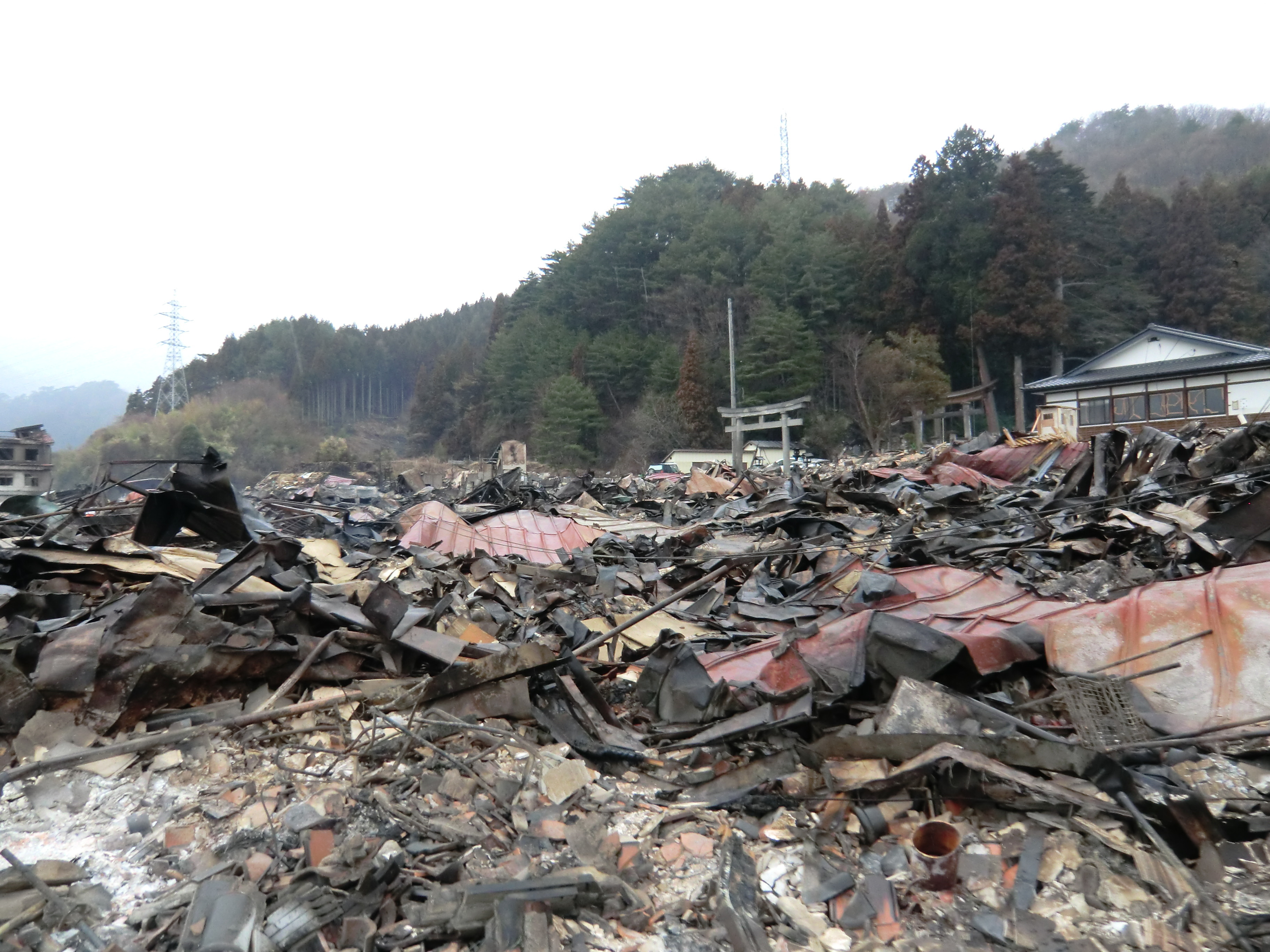 被災状況 拡大表示 ダウンロード 識別子 : 809 タイトルよみ : ヒサイジョウキョウ 說明・要約 : 火災にあった焼け焦げたガレキが散乱している様子 作成者(撮影者) : 堺市消防局 作成者(撮影者)よみ : サカイシショウボウキョク 提供者 : 堺市消防局 提供者よみ : サカイシショウボウキョク 撮影(作成)場所 : 岩手県上閉伊郡大槌町 撮影(作成)場所よみ : イワテケンカミヘイグンオオツチチョウ 作成日・撮影日 : 2011年 3月 15日 カテゴリー : 物的被害 地域 : 町方地区 備考 : 堺市消防局提供 震災事象 行政の執行 > 本部体制の強化 > 【防災関係機関(応援部隊)の支援】ご遺体の捜索から搬送、災害医療、消火活動、避難生活支援、物資搬送等、多岐に渡った。県から職員派遣等の対応があった。