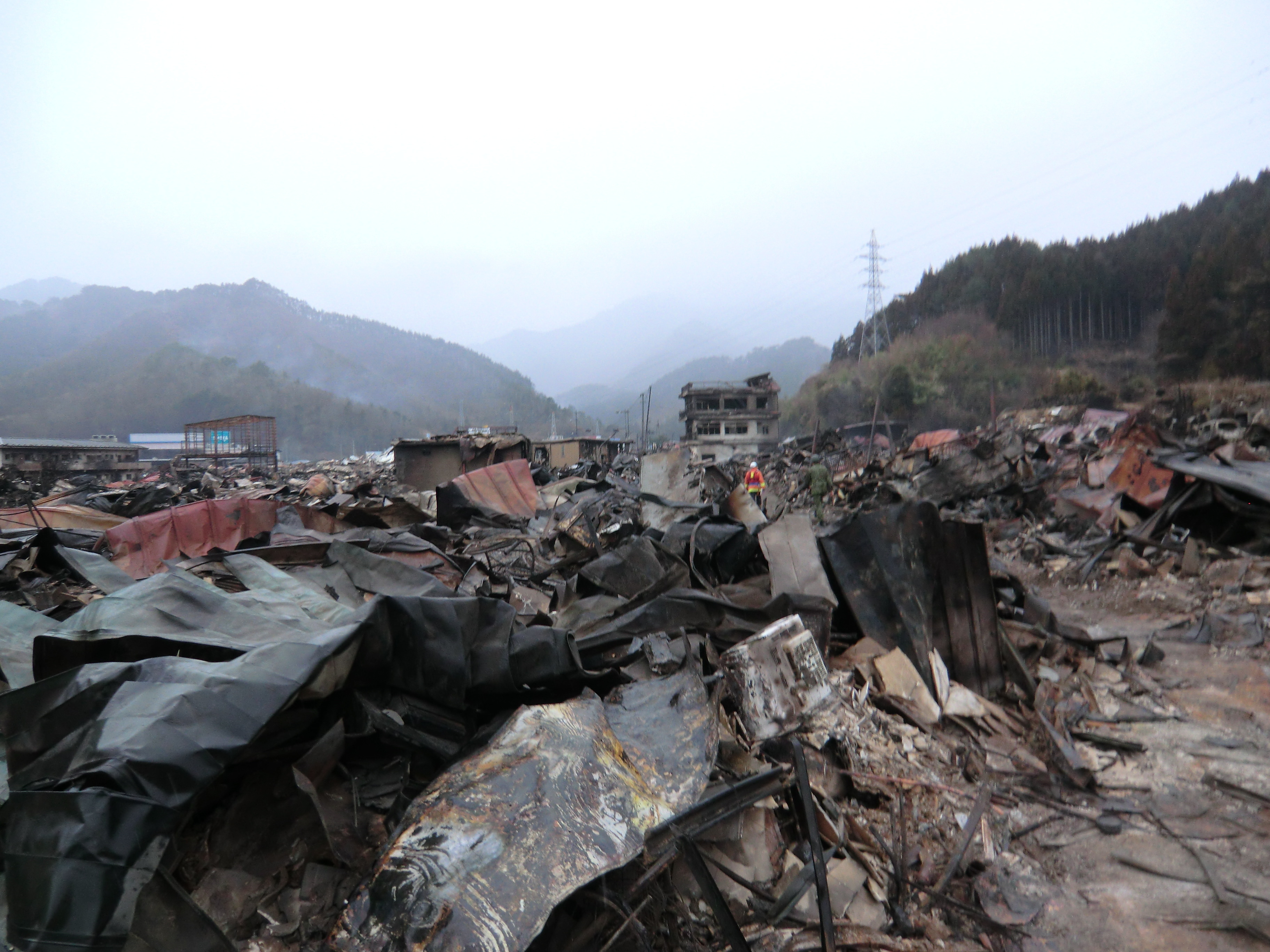 捜索活動の様子 拡大表示 ダウンロード 識別子 : 811 タイトルよみ : ソウサクカツドウノヨウス 說明・要約 : 焼け焦げたガレキが散乱している中で捜索活動をしている自衛隊員と消防隊員の様子 作成者(撮影者) : 堺市消防局 作成者(撮影者)よみ : サカイシショウボウキョク 提供者 : 堺市消防局 提供者よみ : サカイシショウボウキョク 撮影(作成)場所 : 岩手県上閉伊郡大槌町 撮影(作成)場所よみ : イワテケンカミヘイグンオオツチチョウ 作成日・撮影日 : 2011年 3月 15日 カテゴリー : 捜索 地域 : 町方地区 備考 : 堺市消防局提供 震災事象 行政の執行 > 本部体制の強化 > 【防災関係機関(応援部隊)の支援】ご遺体の捜索から搬送、災害医療、消火活動、避難生活支援、物資搬送等、多岐に渡った。県から職員派遣等の対応があった。