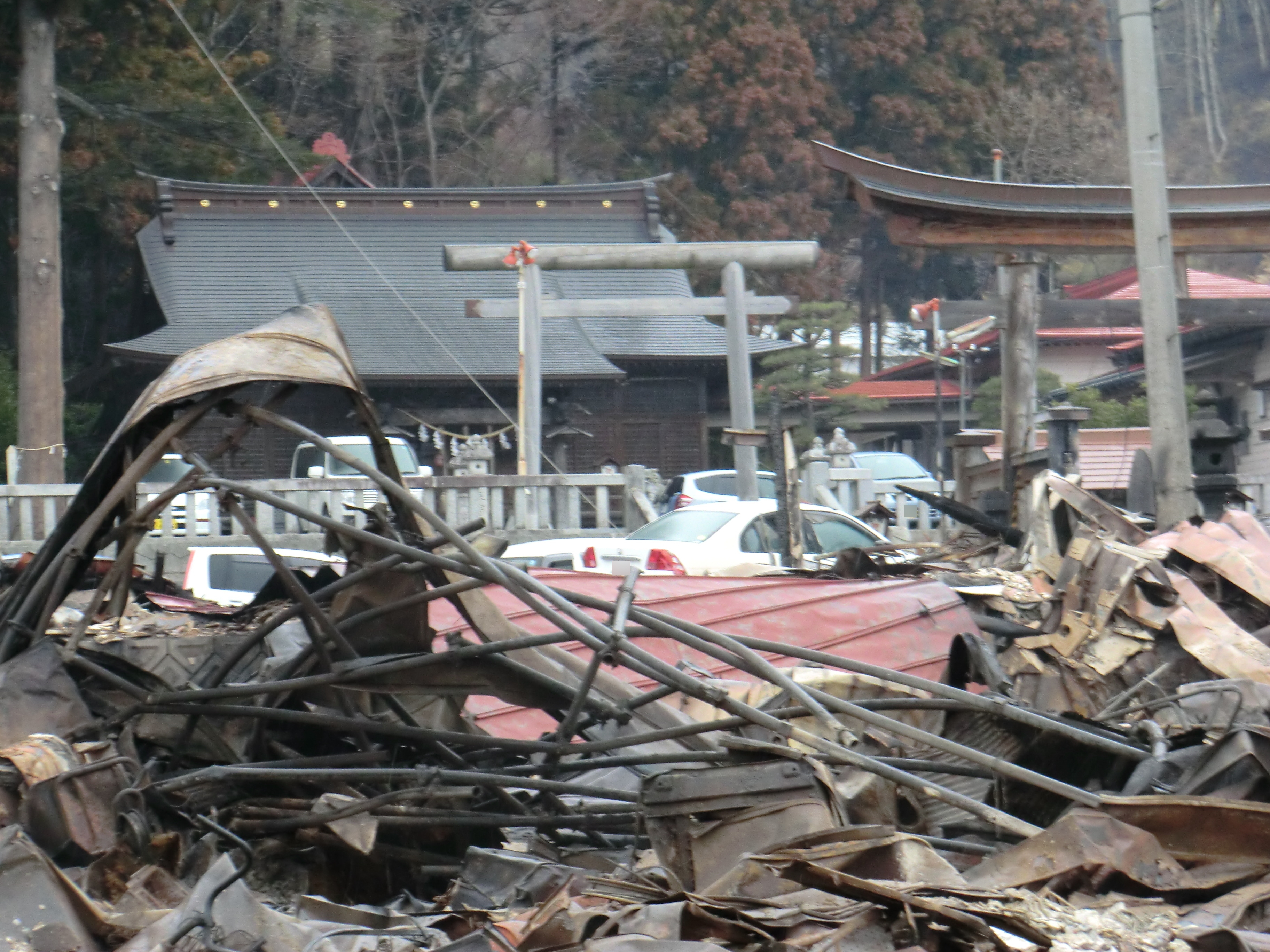 被災状況 拡大表示 ダウンロード 識別子 : 814 タイトルよみ : ヒサイジョウキョウ 說明・要約 : 被災した鳥居とガレキが散乱している様子 作成者(撮影者) : 堺市消防局 作成者(撮影者)よみ : サカイシショウボウキョク 提供者 : 堺市消防局 提供者よみ : サカイシショウボウキョク 撮影(作成)場所 : 岩手県上閉伊郡大槌町 上町 撮影(作成)場所よみ : イワテケンカミヘイグンオオツチチョウ カミチョウ 作成日・撮影日 : 2011年 3月 15日 カテゴリー : 物的被害 地域 : 町方地区 備考 : 堺市消防局提供 震災事象 行政の執行 > 本部体制の強化 > 【防災関係機関(応援部隊)の支援】ご遺体の捜索から搬送、災害医療、消火活動、避難生活支援、物資搬送等、多岐に渡った。県から職員派遣等の対応があった。
