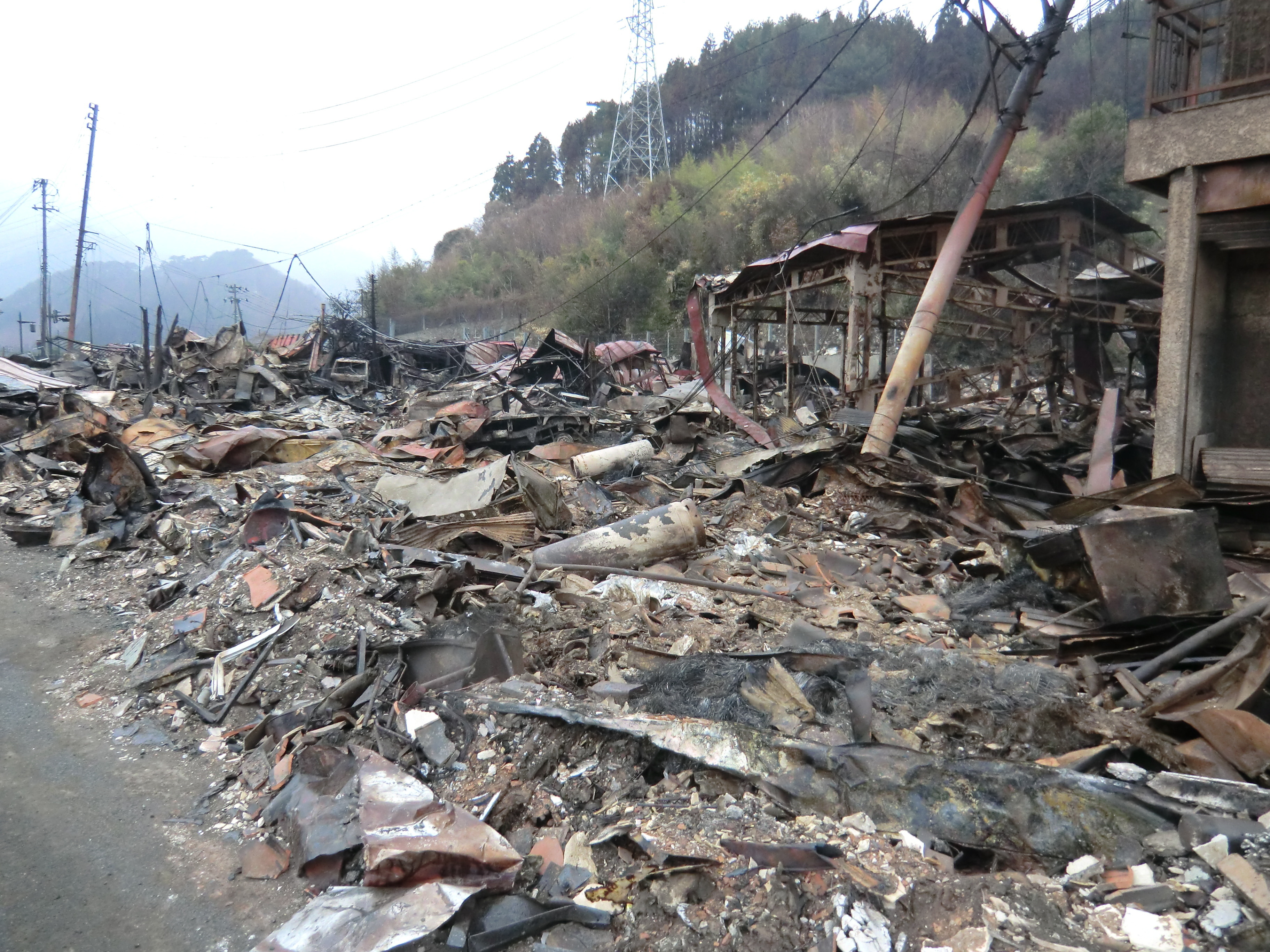被災状況 拡大表示 ダウンロード 識別子 : 819 タイトルよみ : ヒサイジョウキョウ 說明・要約 : 火災にあった建物と焼け焦げたガレキが散乱している様子 作成者(撮影者) : 堺市消防局 作成者(撮影者)よみ : サカイシショウボウキョク 提供者 : 堺市消防局 提供者よみ : サカイシショウボウキョク 撮影(作成)場所 : 岩手県上閉伊郡大槌町 撮影(作成)場所よみ : イワテケンカミヘイグンオオツチチョウ 作成日・撮影日 : 2011年 3月 15日 カテゴリー : 物的被害 地域 : 町方地区 備考 : 堺市消防局提供 震災事象 行政の執行 > 本部体制の強化 > 【防災関係機関(応援部隊)の支援】ご遺体の捜索から搬送、災害医療、消火活動、避難生活支援、物資搬送等、多岐に渡った。県から職員派遣等の対応があった。