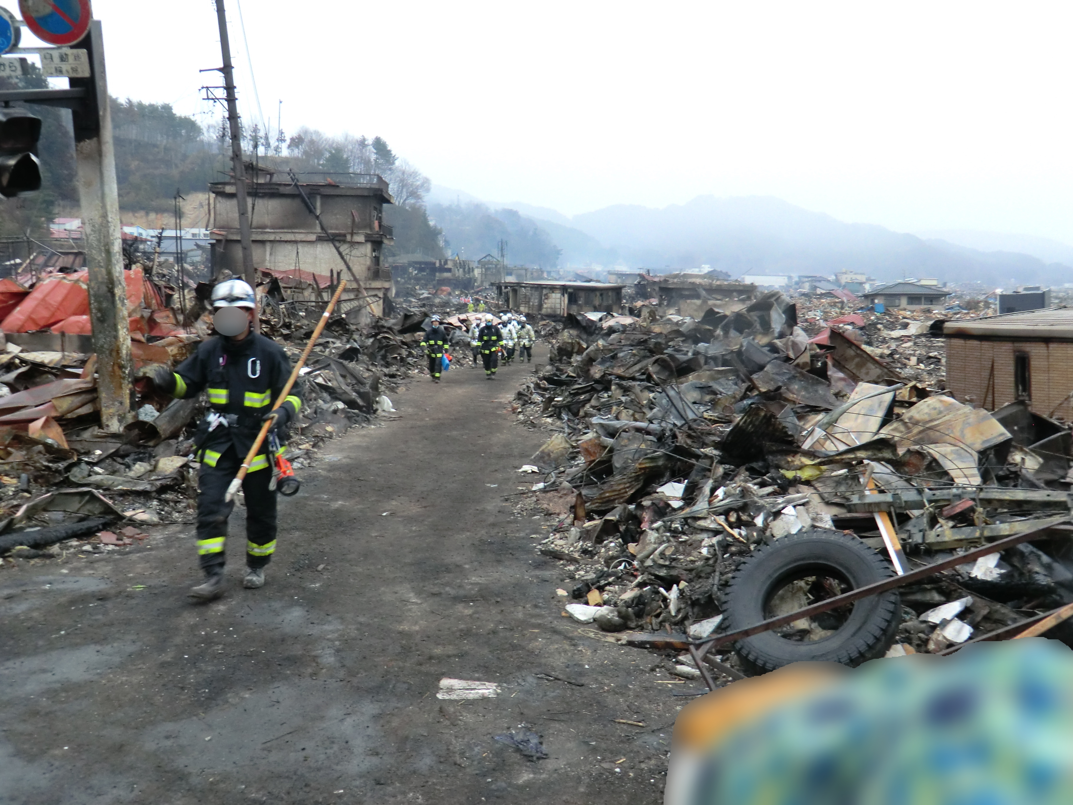 捜索活動の様子 拡大表示 ダウンロード 識別子 : 827 タイトルよみ : ソウサクカツドウノヨウス 說明・要約 : ガレキの中で捜索活動をしている消防隊員の様子 作成者(撮影者) : 堺市消防局 作成者(撮影者)よみ : サカイシショウボウキョク 提供者 : 堺市消防局 提供者よみ : サカイシショウボウキョク 撮影(作成)場所 : 岩手県上閉伊郡大槌町 撮影(作成)場所よみ : イワテケンカミヘイグンオオツチチョウ 作成日・撮影日 : 2011年 3月 15日 カテゴリー : 捜索 地域 : 町方地区 備考 : 堺市消防局提供 震災事象 行政の執行 > 本部体制の強化 > 【防災関係機関(応援部隊)の支援】ご遺体の捜索から搬送、災害医療、消火活動、避難生活支援、物資搬送等、多岐に渡った。県から職員派遣等の対応があった。