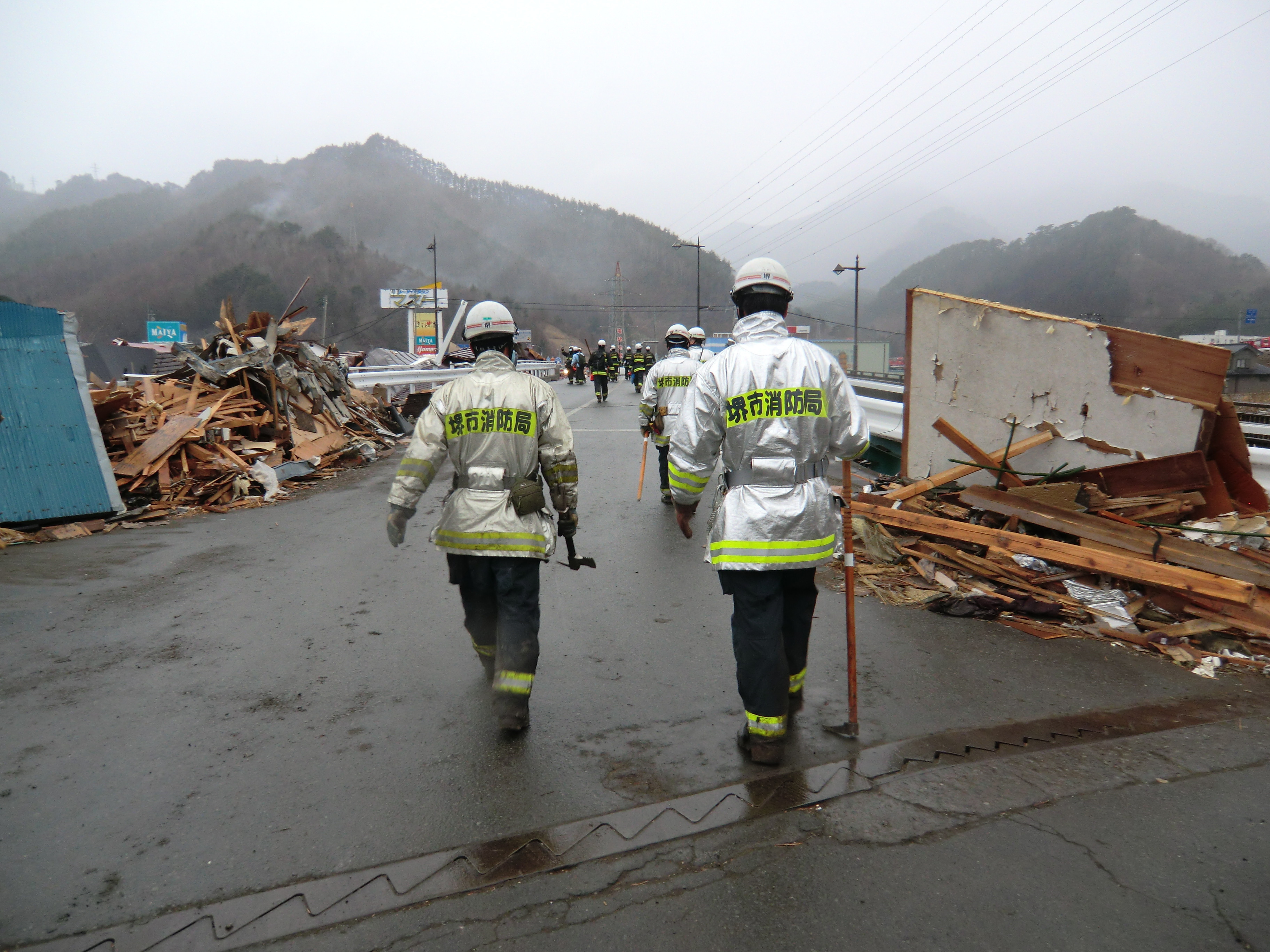 捜索活動の様子 拡大表示 ダウンロード 識別子 : 829 タイトルよみ : ソウサクカツドウノヨウス 說明・要約 : ガレキの中で捜索活動をしている消防隊員の様子 作成者(撮影者) : 堺市消防局 作成者(撮影者)よみ : サカイシショウボウキョク 提供者 : 堺市消防局 提供者よみ : サカイシショウボウキョク 撮影(作成)場所 : 岩手県上閉伊郡大槌町 上町 撮影(作成)場所よみ : イワテケンカミヘイグンオオツチチョウ カミチョウ 作成日・撮影日 : 2011年 3月 15日 カテゴリー : 捜索 地域 : 町方地区 備考 : 堺市消防局提供 震災事象 行政の執行 > 本部体制の強化 > 【防災関係機関(応援部隊)の支援】ご遺体の捜索から搬送、災害医療、消火活動、避難生活支援、物資搬送等、多岐に渡った。県から職員派遣等の対応があった。