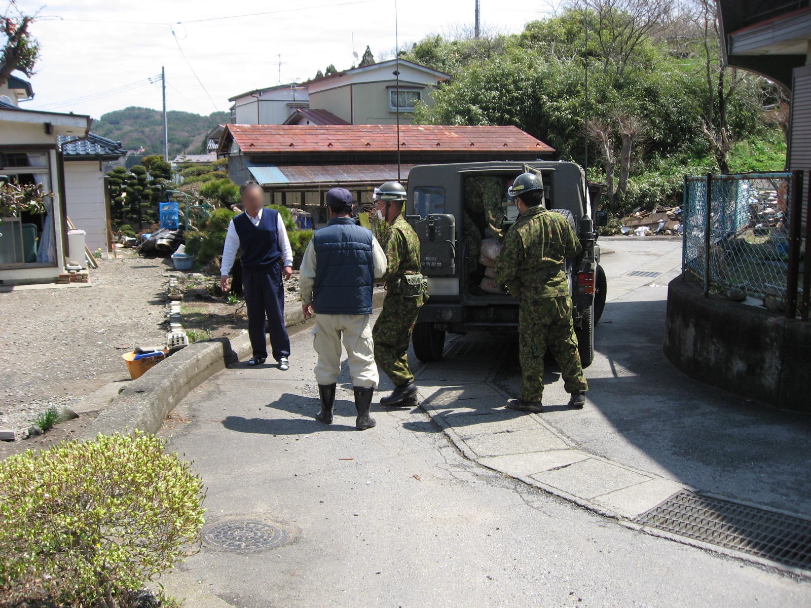 自衛隊による物資輸送(吉里吉里1丁目) 拡大表示 ダウンロード 識別子 : 895 タイトルよみ : ジエイタイニヨルブッシユソウ(キリキリ1チョウメ) 說明・要約 : 支援物資を配達している自衛隊員 作成者(撮影者) : 自衛隊 作成者(撮影者)よみ : ジエイタイ 提供者 : 自衛隊 提供者よみ : ジエイタイ 撮影(作成)場所 : 岩手県上閉伊郡大槌町 吉里吉里 撮影(作成)場所よみ : イワテケンカミヘイグンオオツチチョウ キリキリ 作成日・撮影日 : 2011年 4月 28日 カテゴリー : 自衛隊 支援・援助物資 被災者支援 支援・ボランティア 国内外からの支援 地域 : 吉里吉里地区 備考 : 一般公開 震災事象 行政の執行 > 防災機関からの受援調整 > 避難所運営班が各避難所からの物資ニーズを集め、物資班に提供していた。