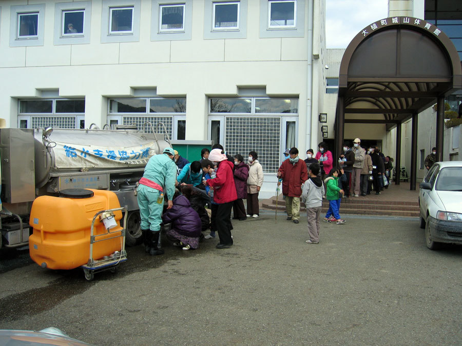 水道事業所応急給水活動 1次隊(大槌町中央公民館)