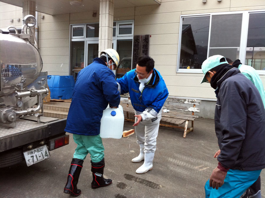 神戸水道局が金沢地区で給水活動している様子。