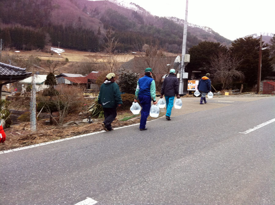 給水した水を運んでいる様子。