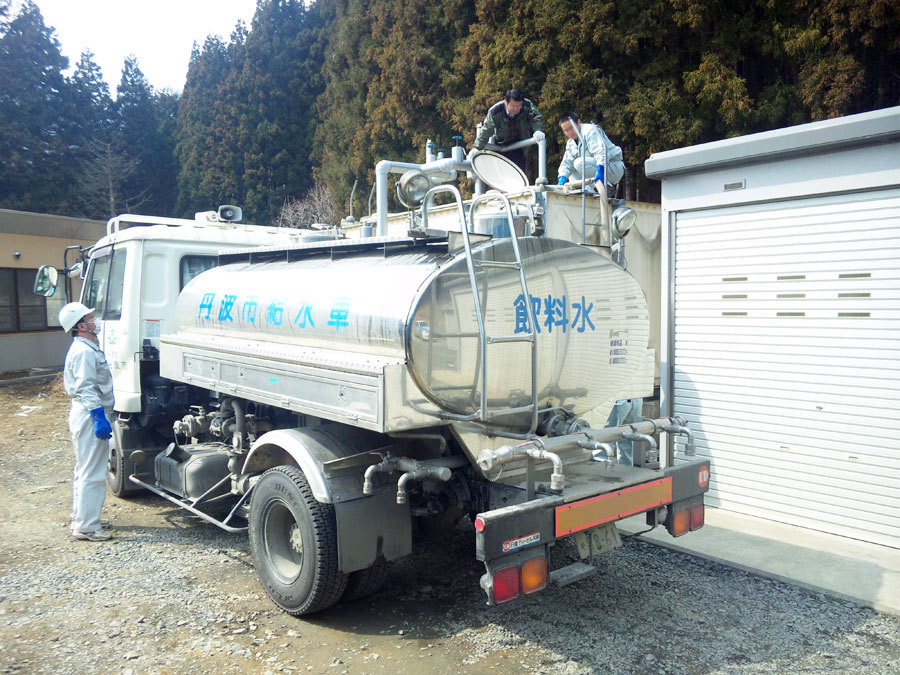 兵庫県丹波市の水道局が給水活動している様子。
