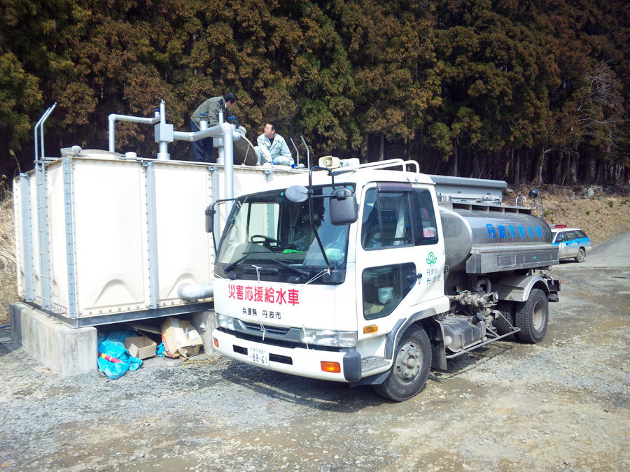 兵庫県丹波市の水道局が給水活動している様子。