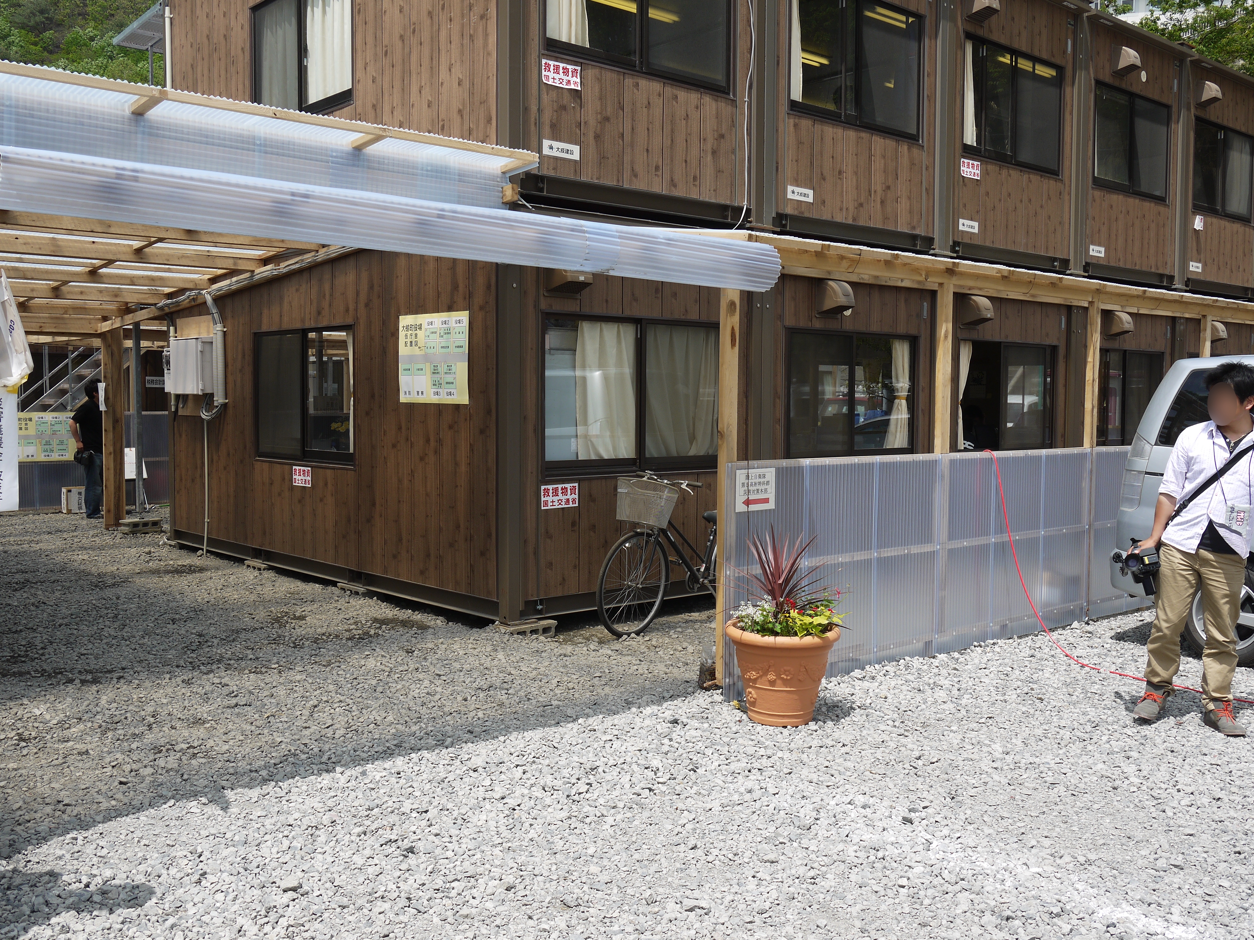 大槌小学校の校庭に移転した役場仮庁舎 拡大表示 ダウンロード 識別子 : 905 タイトルよみ : オオツチショウガッコウノコウテイニイテンシタヤクバカリチョウシャ 說明・要約 : 大槌小学校の校庭に移転した役場仮庁舎に寄贈された花 作成者(撮影者) : 大槌町 作成者(撮影者)よみ : オオツチチョウ 提供者 : 提供者よみ : 撮影(作成)場所 : 岩手県上閉伊郡大槌町 大槌町役場 撮影(作成)場所よみ : イワテケンカミヘイグンオオツチチョウ オオツチチョウヤクバ 作成日・撮影日 : 2011年 5月 27日 カテゴリー : その他 地域 : 町方地区 備考 : 震災事象 行政の執行 > 災害対策本部の組織対応 > 【仮庁舎移転】大槌町学校の校庭に仮庁舎移転