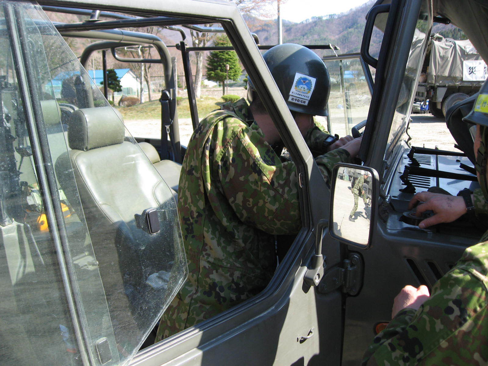 自動車の整備をしている自衛隊員の様子